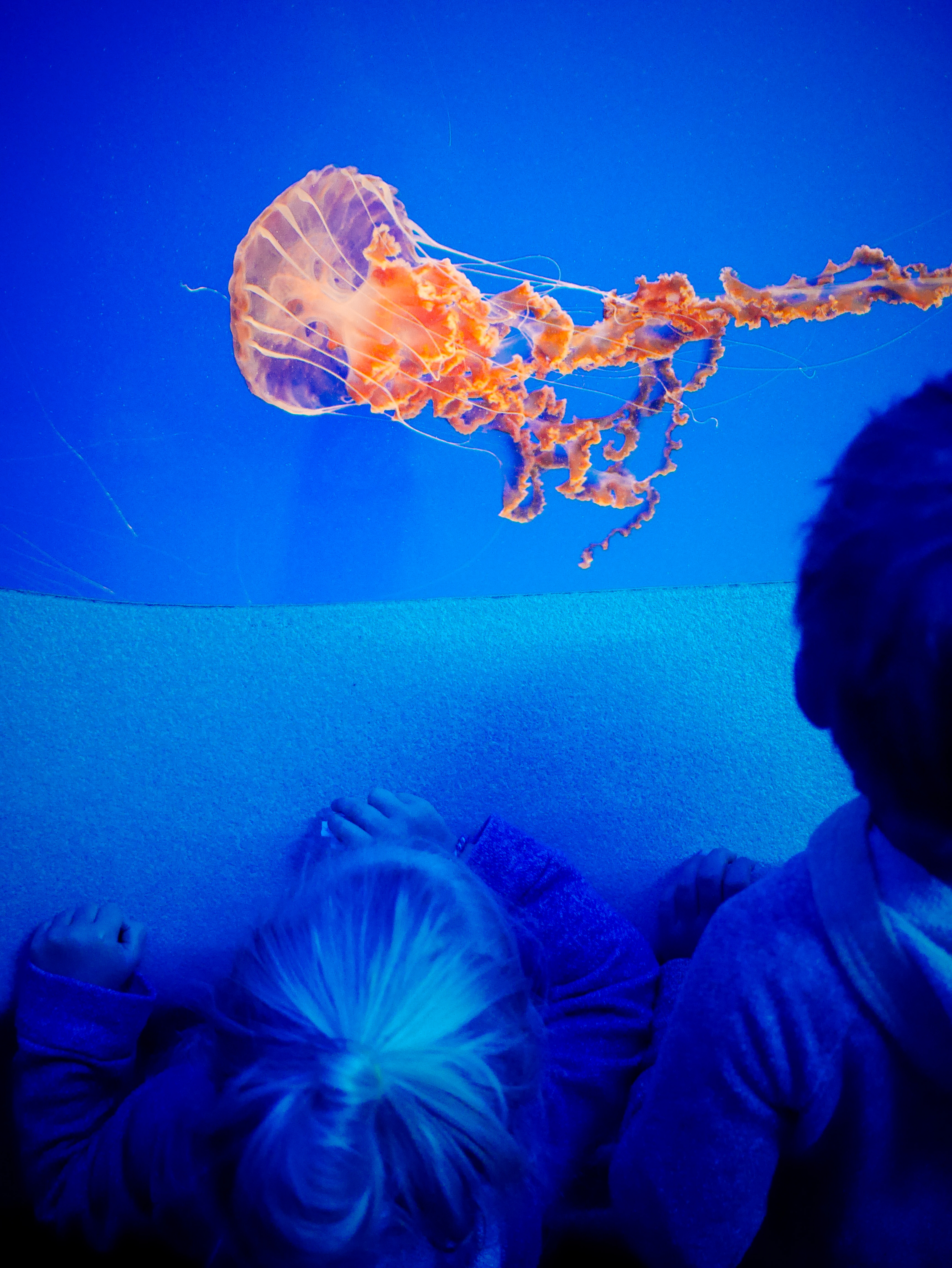Olly: This is Lola & I watching the jellyfish. They were bright orange and had really really really long tentacles and they ooooched around the tank.