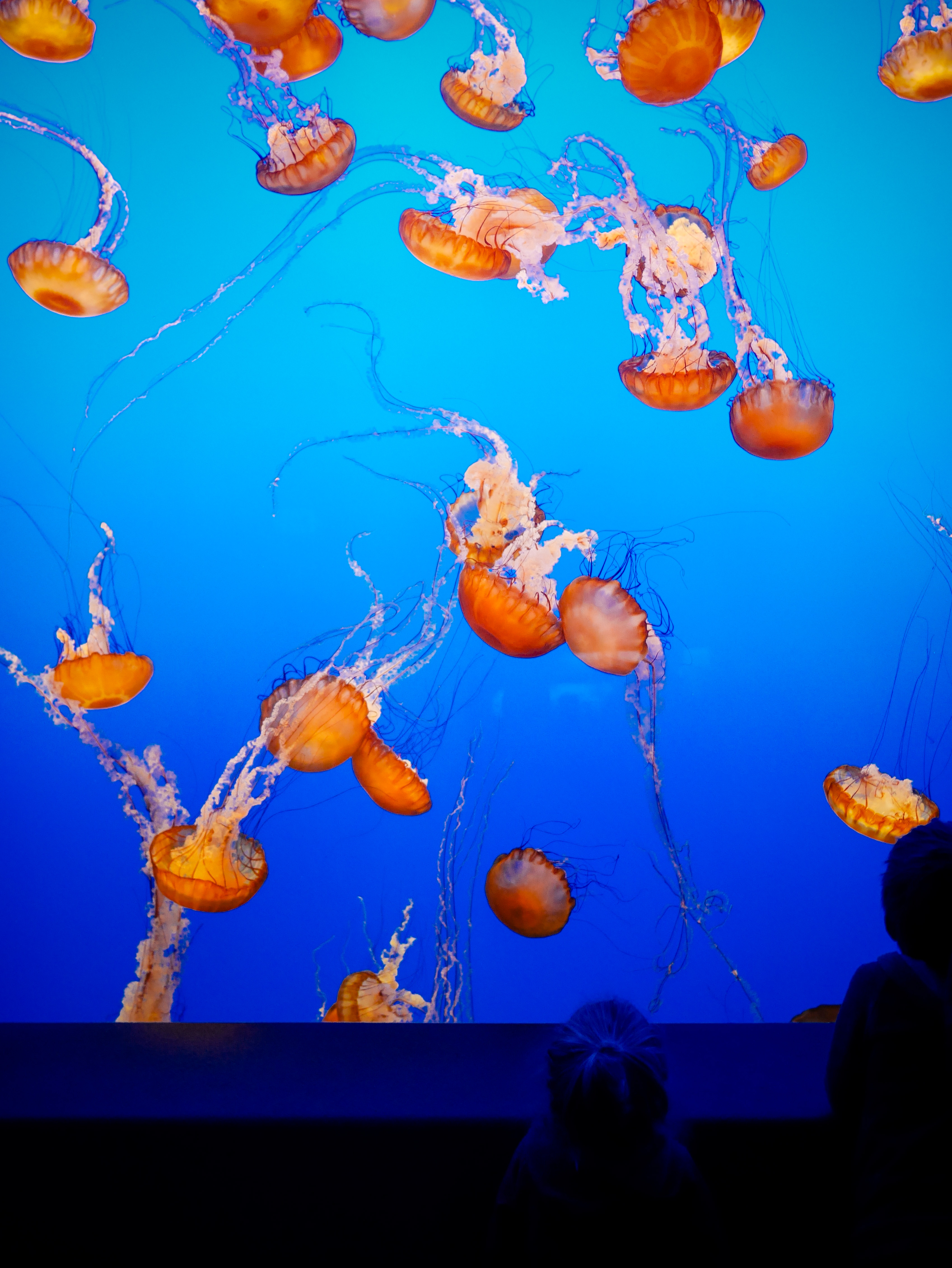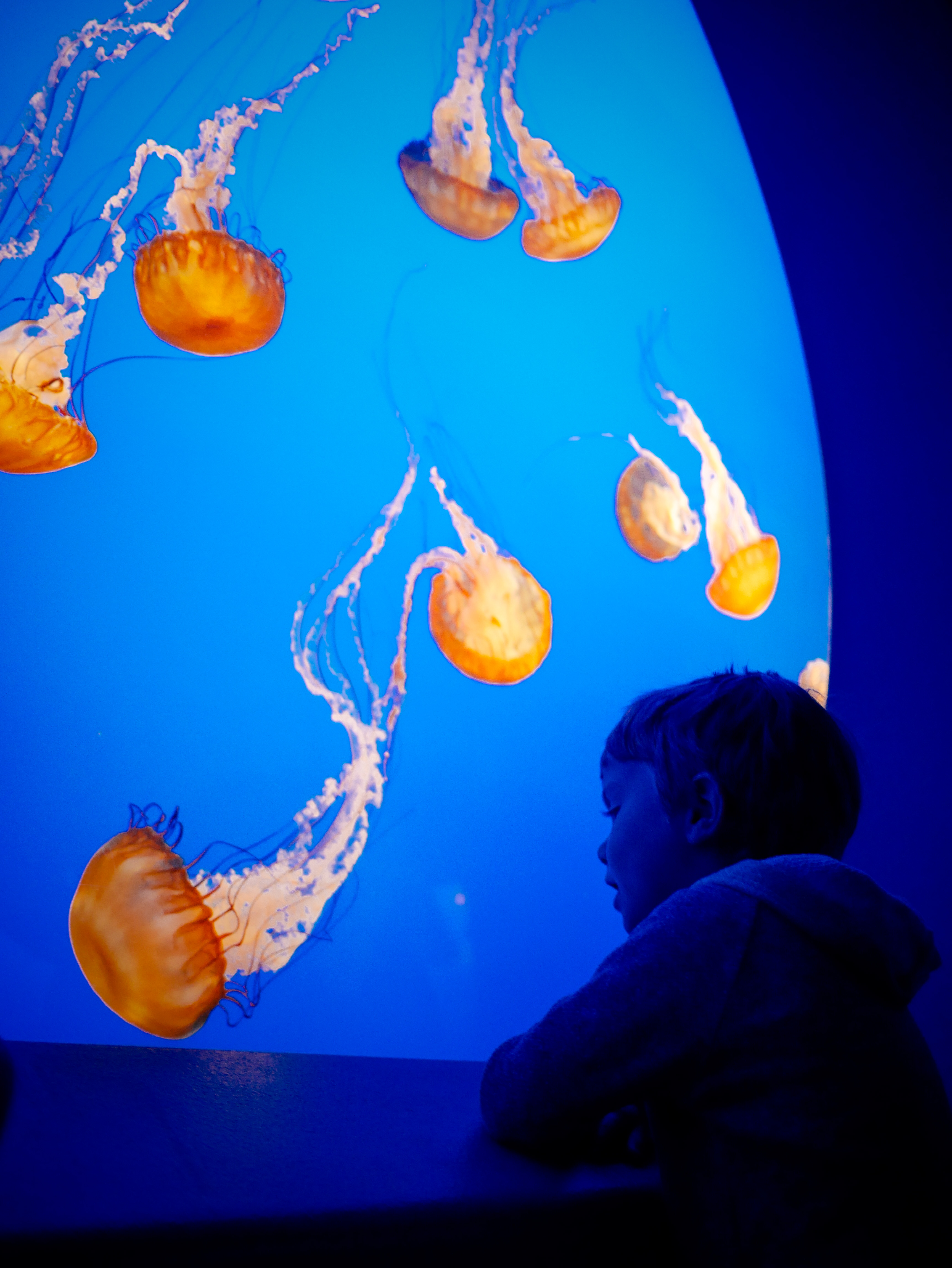 We went to see the jellyfish and squid. They, like, oooooched around in the water.
