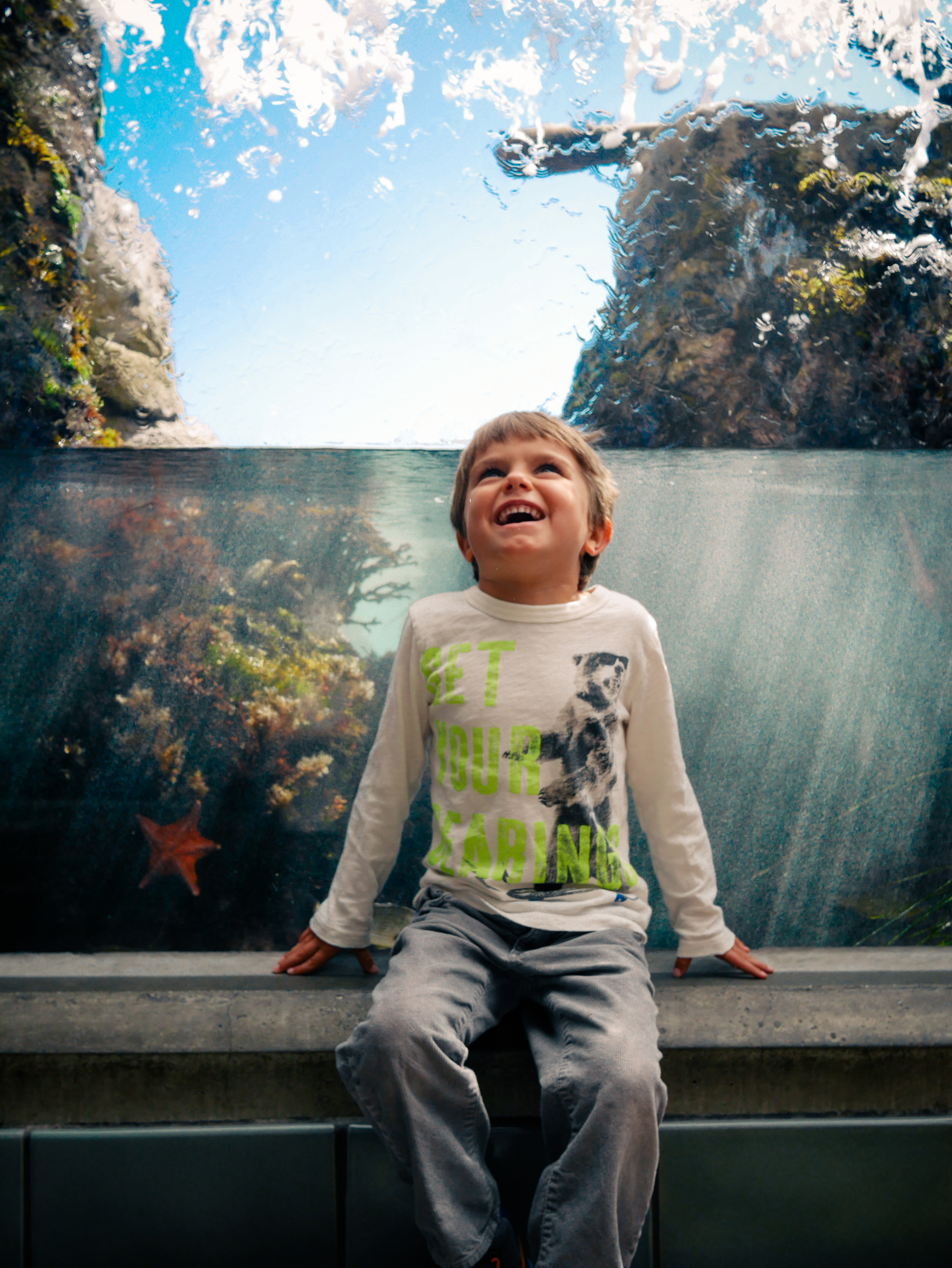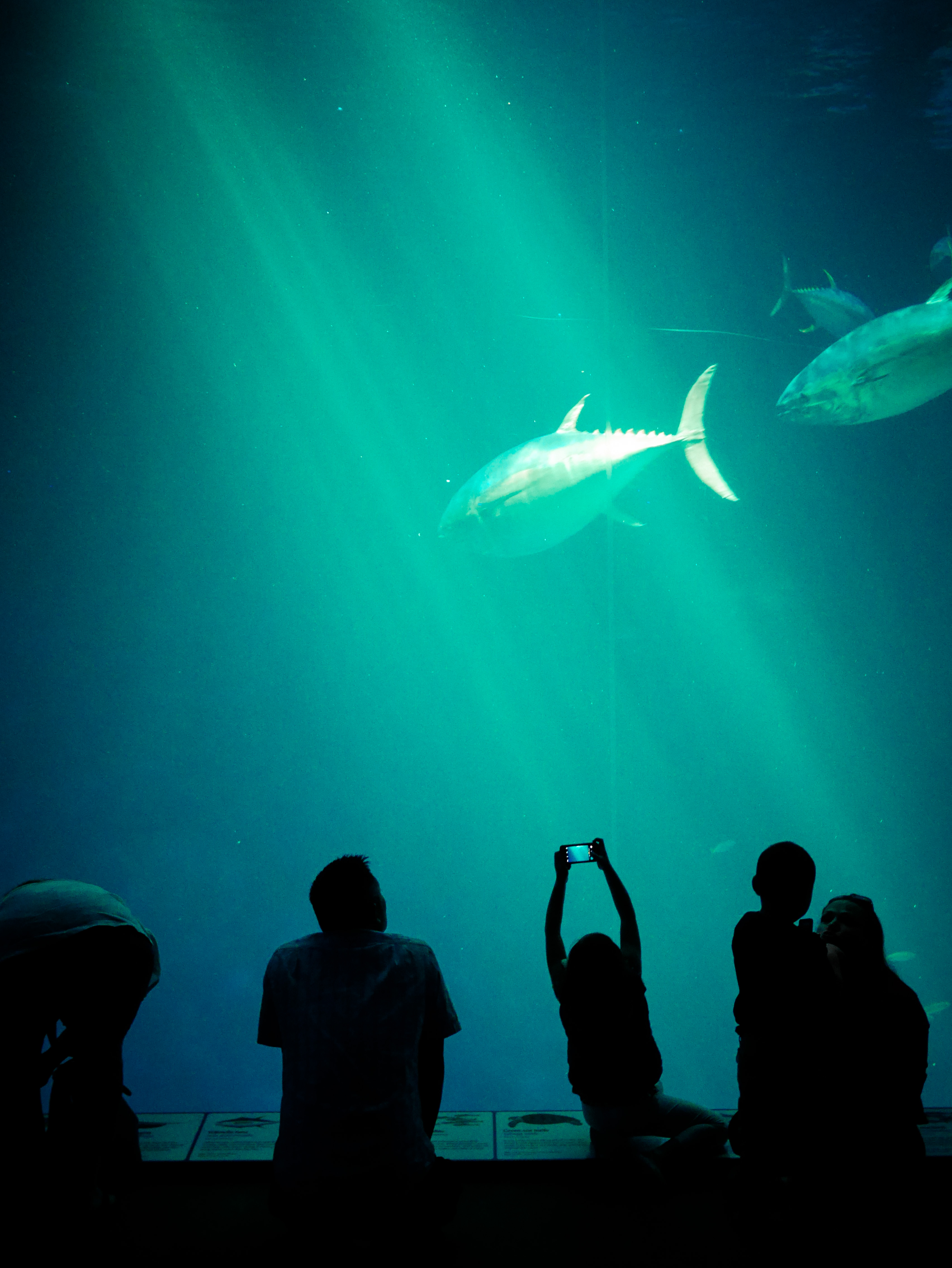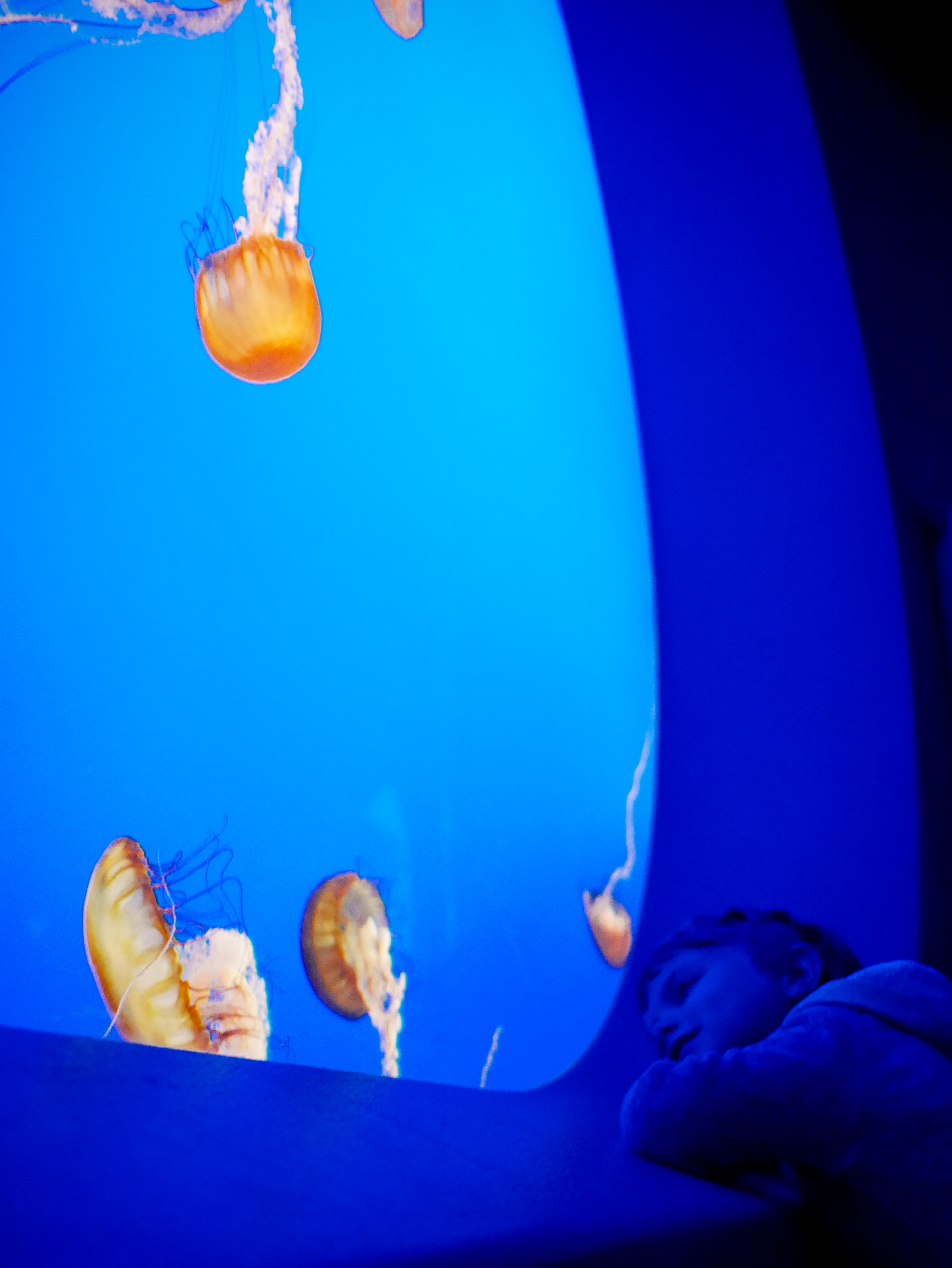 Becca: This photograph reminds me of the video, Kuroshio Sea, which I love. I played it for Olly when we came home. He loved the whales sharks and the scuba diver on the bottom of the aquarium in the video. It’s amazing to think of tanks larger than this big tuna tank—a highlight for us at the aquarium. We spent 30 minutes with our faces peeled to the glass.