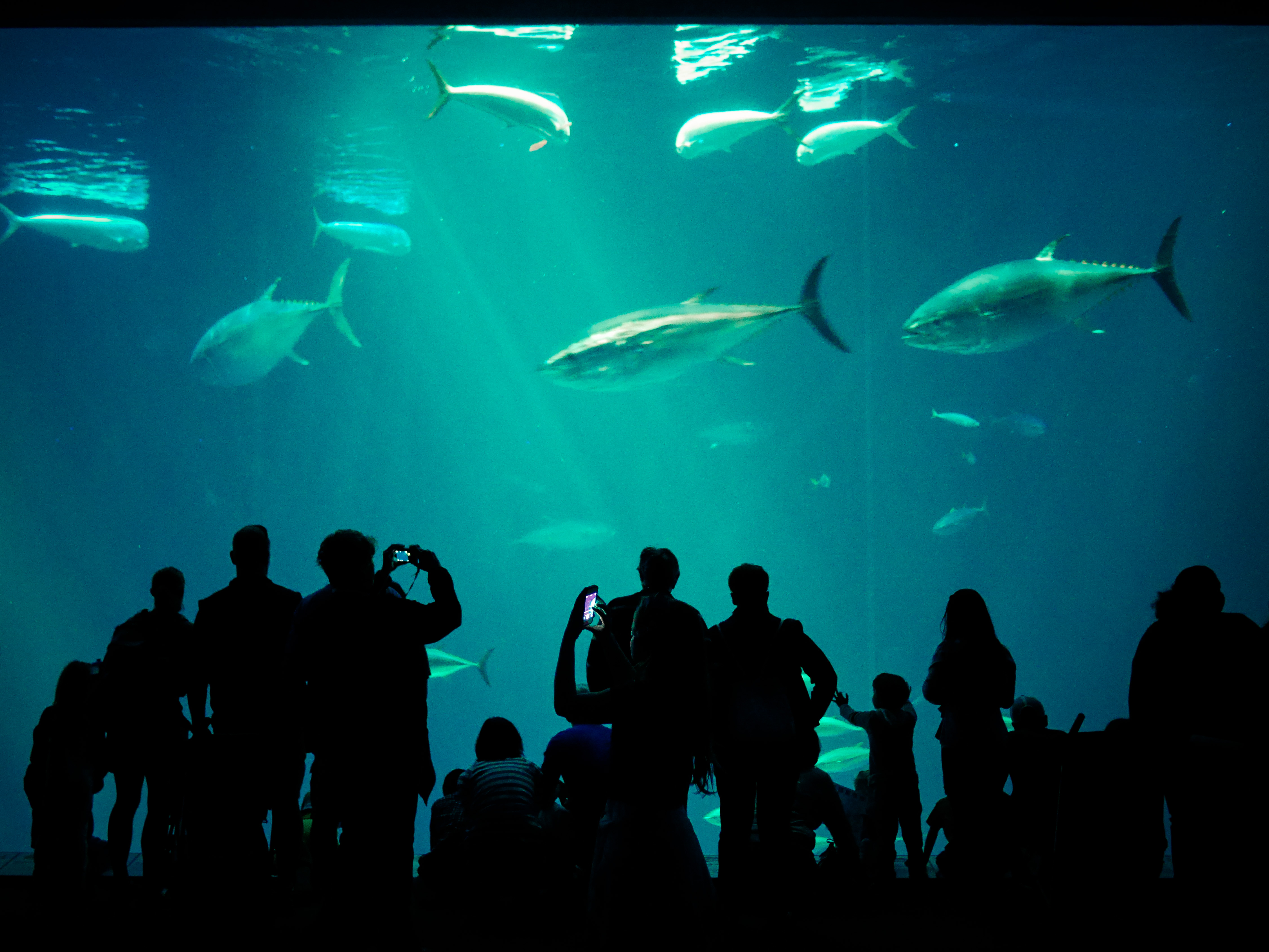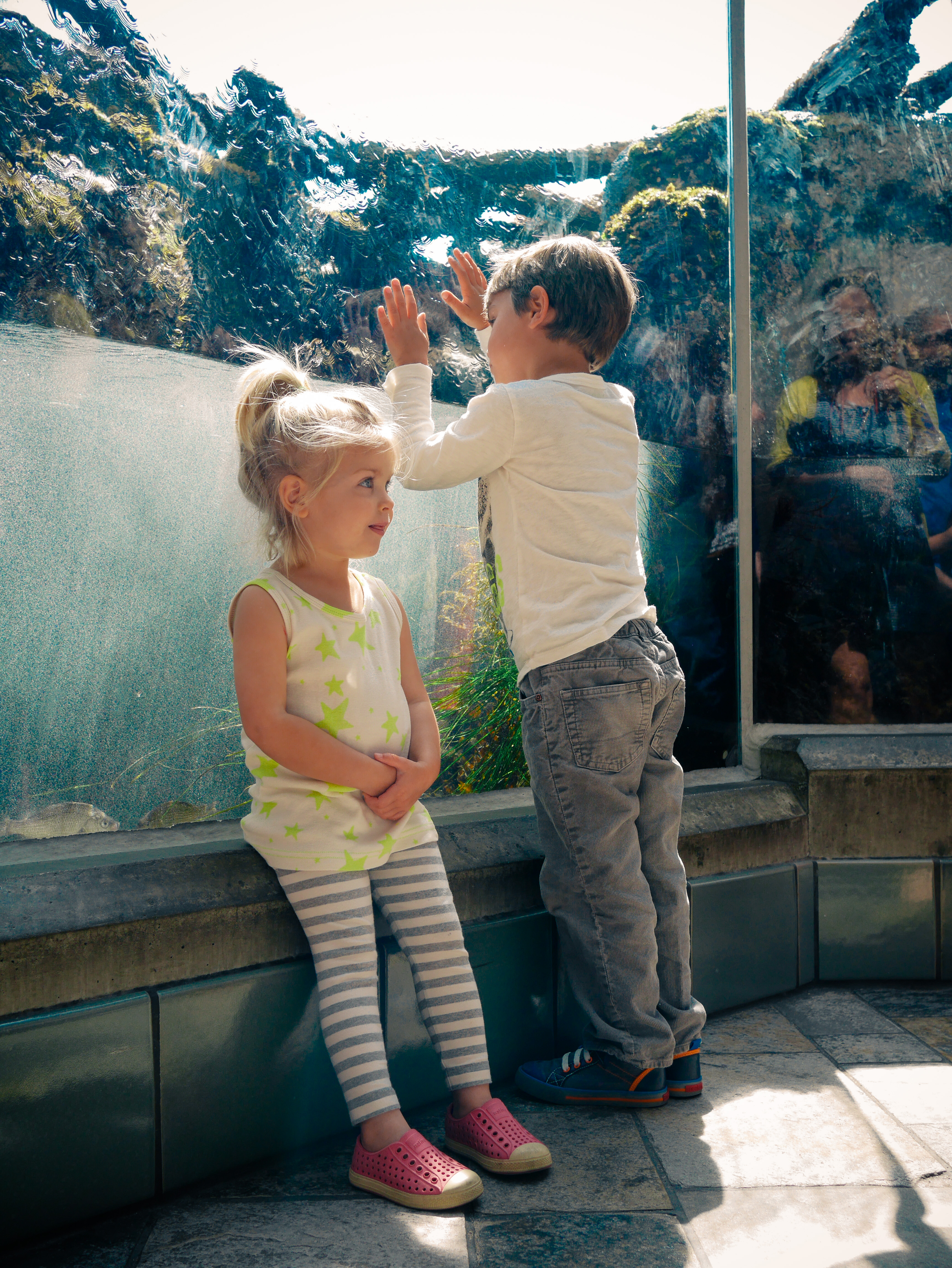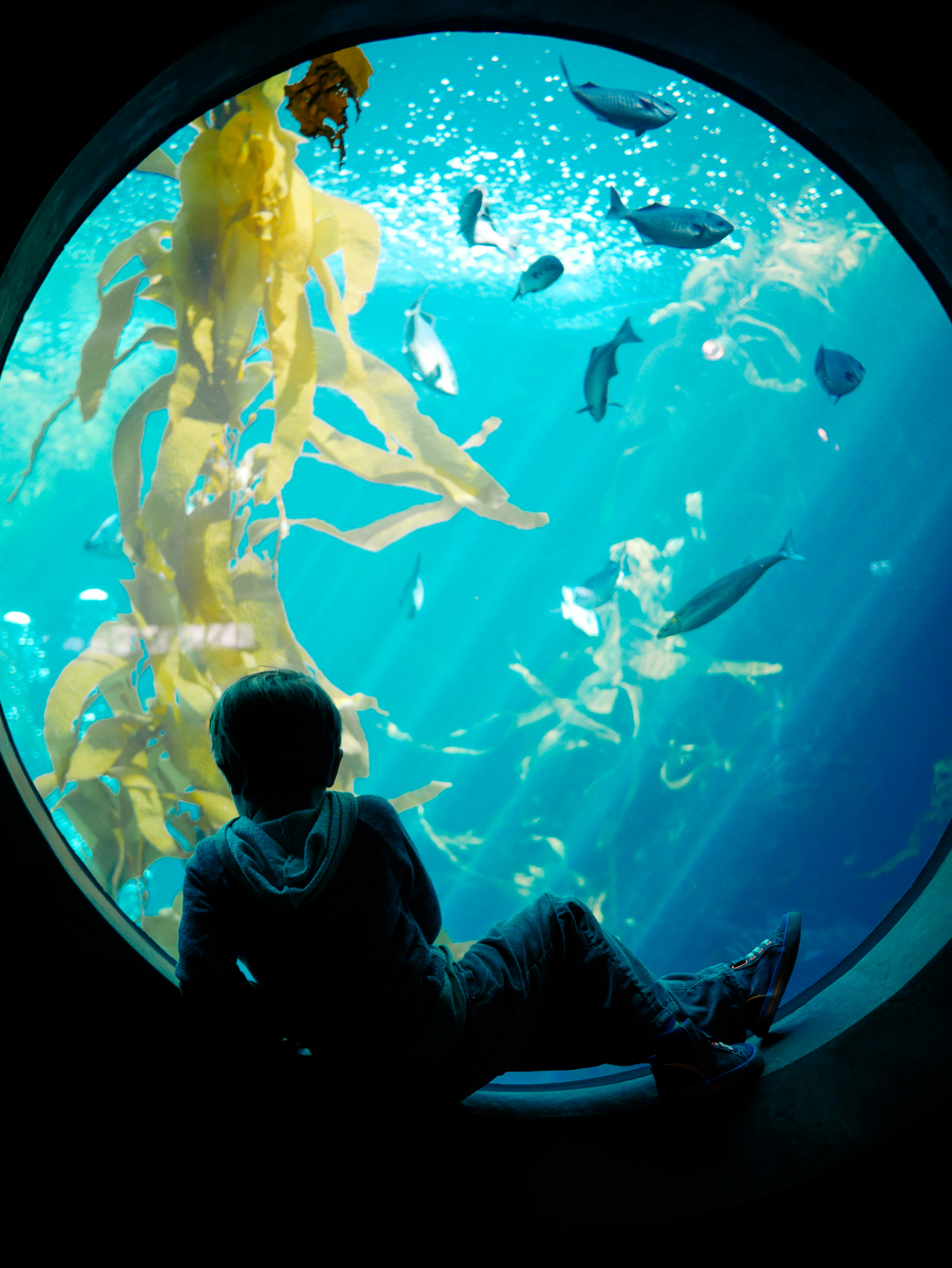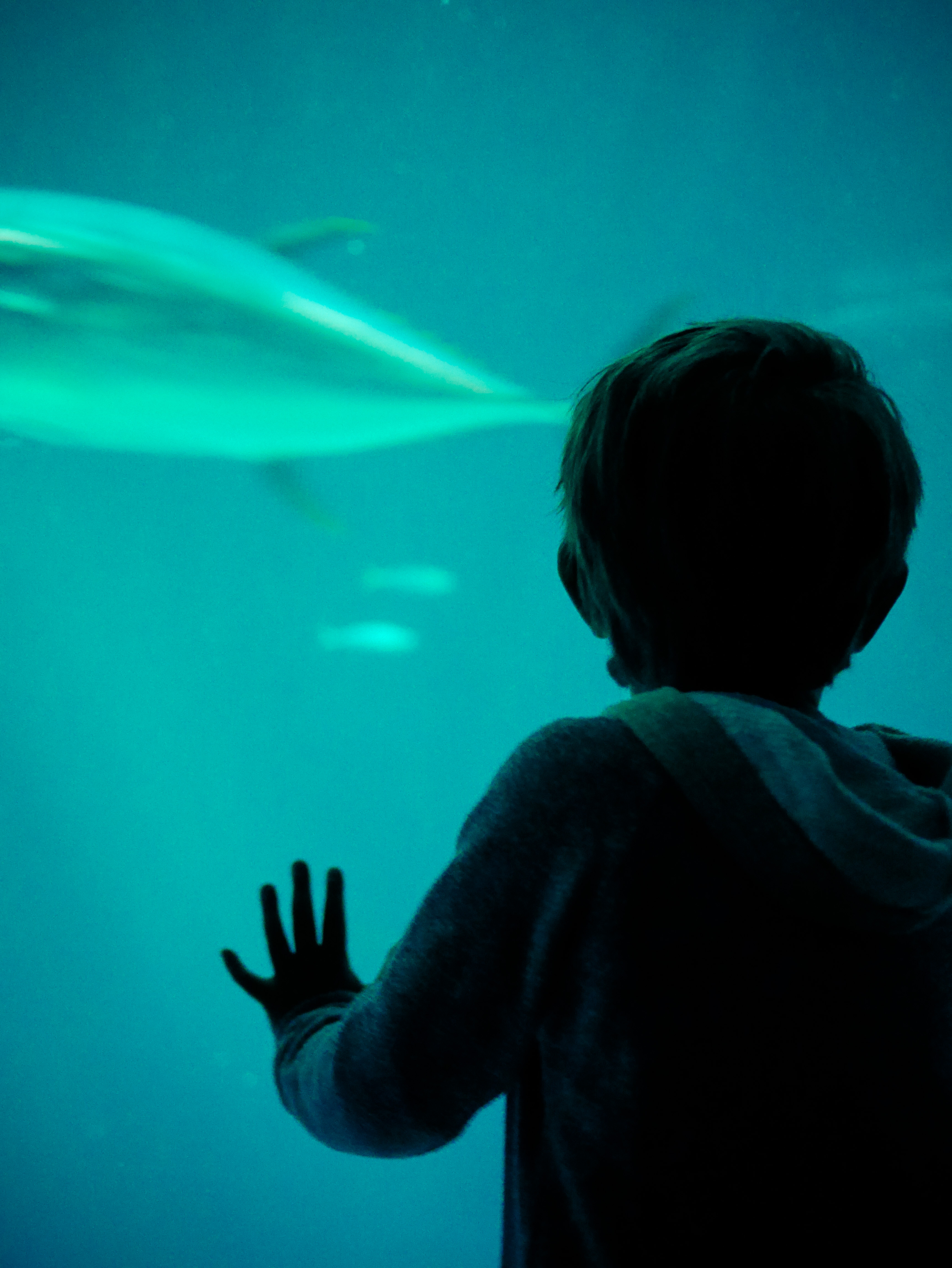 Becca: This photograph reminds me of the video, Kuroshio Sea, which I love. I played it for Olly when we came home. He loved the whales sharks and the scuba diver on the bottom of the aquarium in the video. It’s amazing to think of tanks larger than this big tuna tank—a highlight for us at the aquarium. We spent 30 minutes with our faces peeled to the glass.