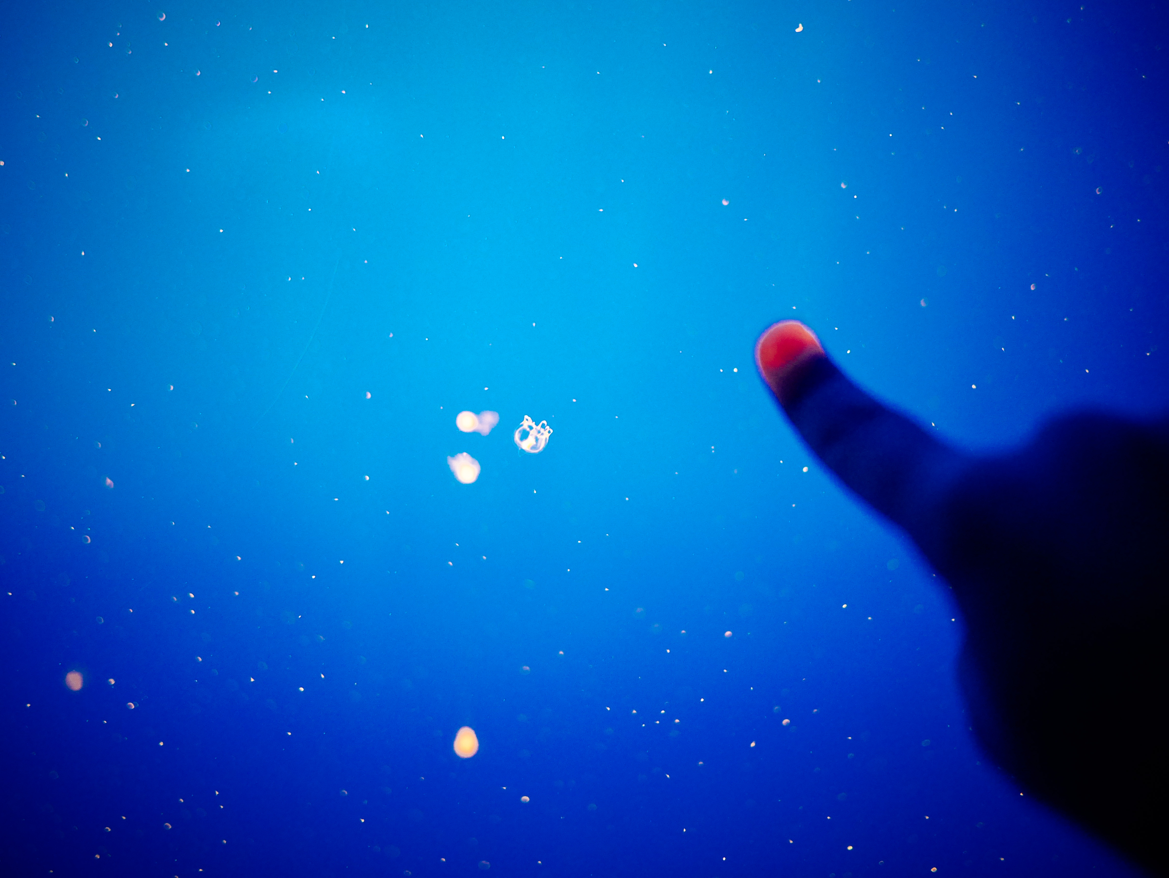 Becca: This is a super small jellyfish. We put up Olly’s finger for scale.