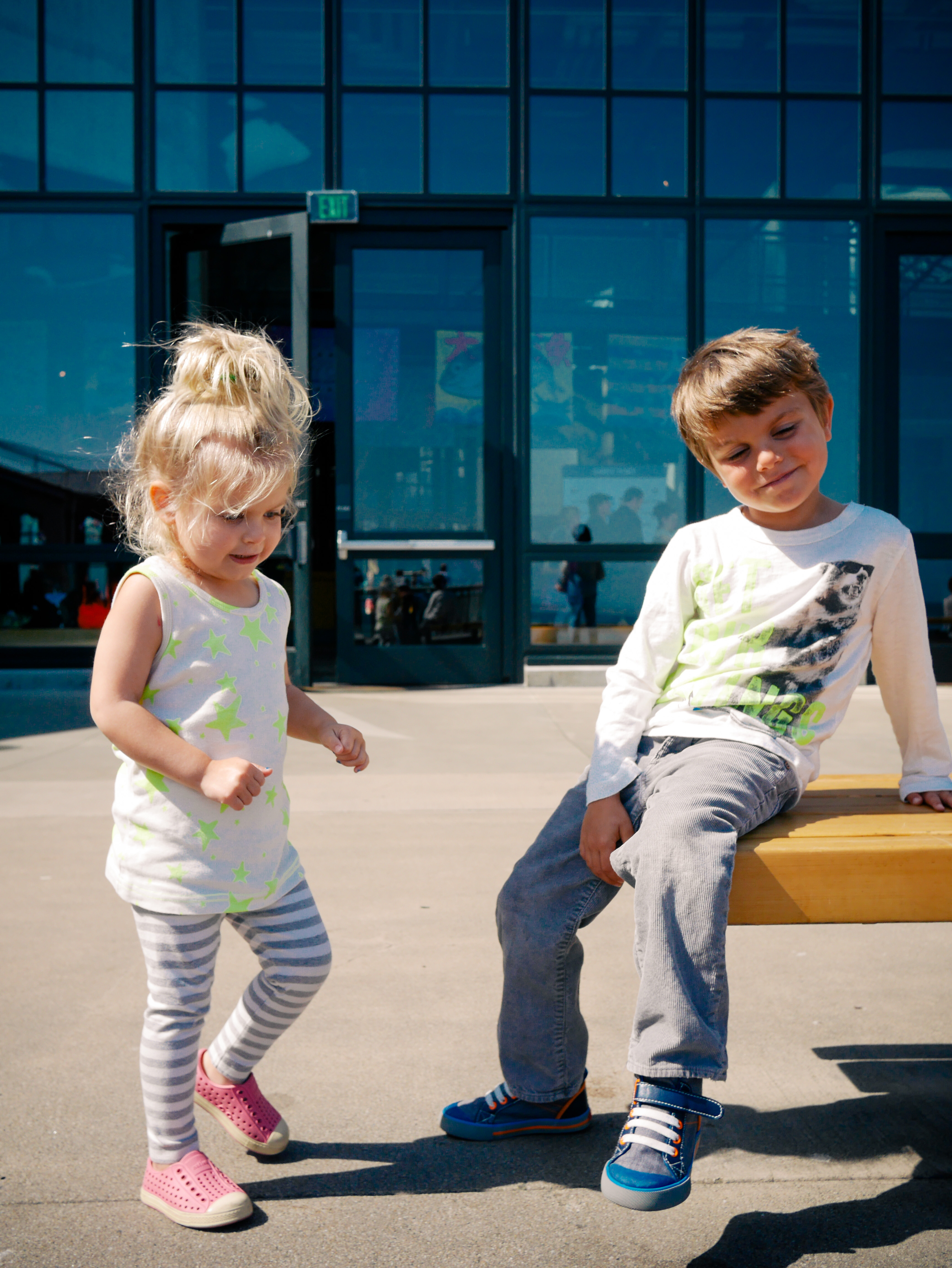 Becca: It was a gorgeous day in Monterey, so we stepped outside to get some fresh air. Oliver spied the binoculars and we spent a long time looking out at the ocean. Olly: I saw a kelp forest and I saw a sea otter swimming in the kelp forest.
