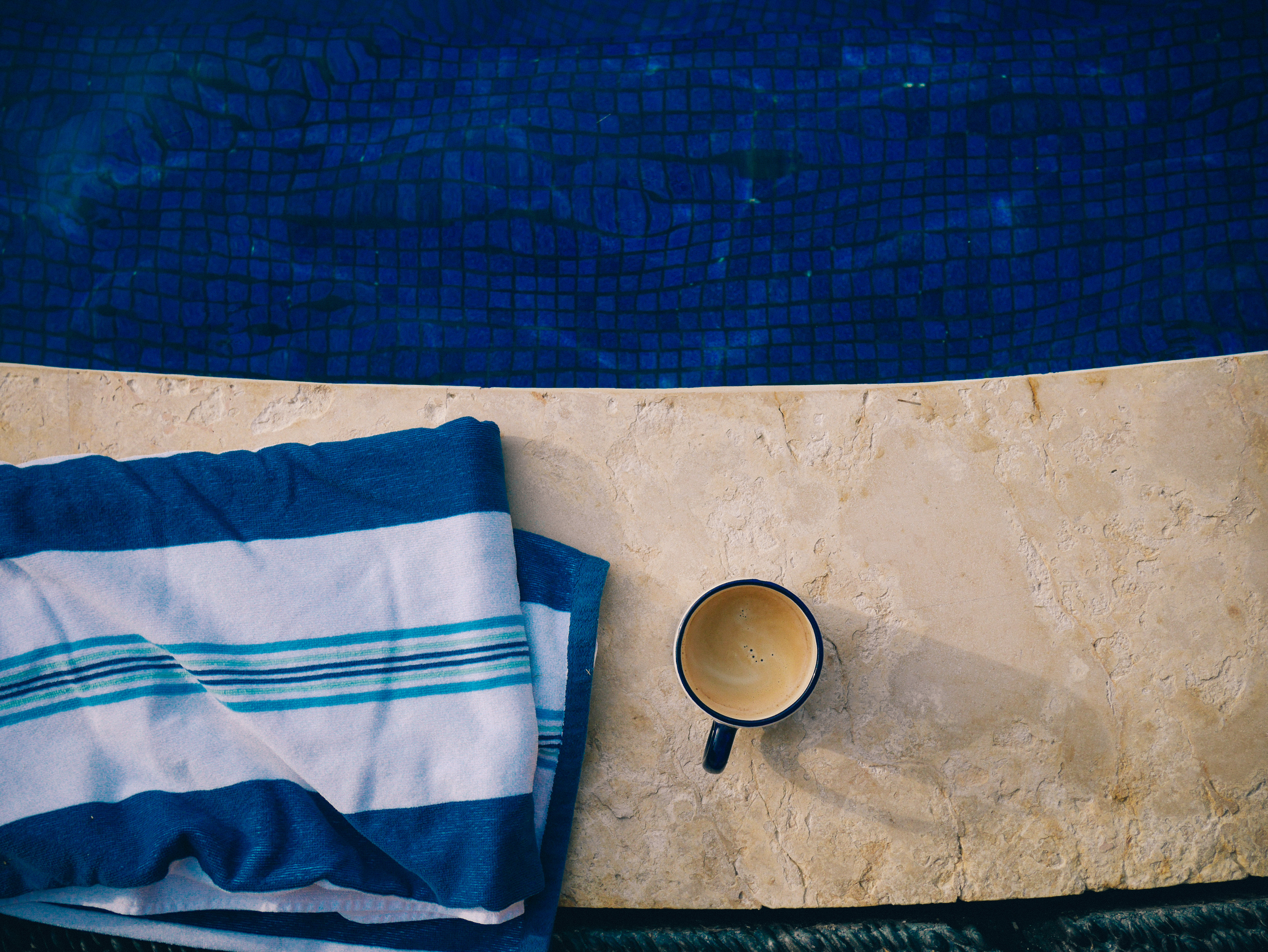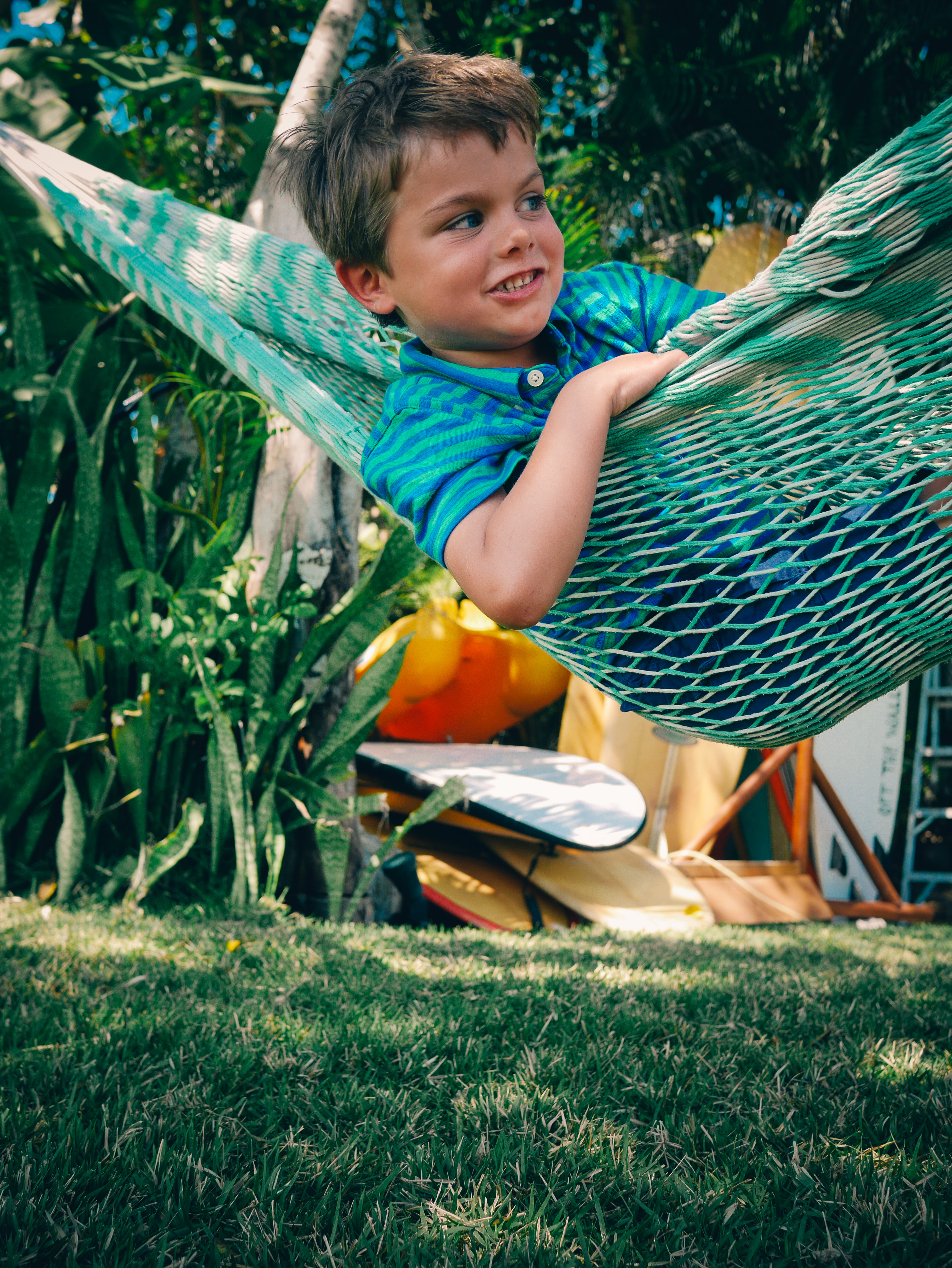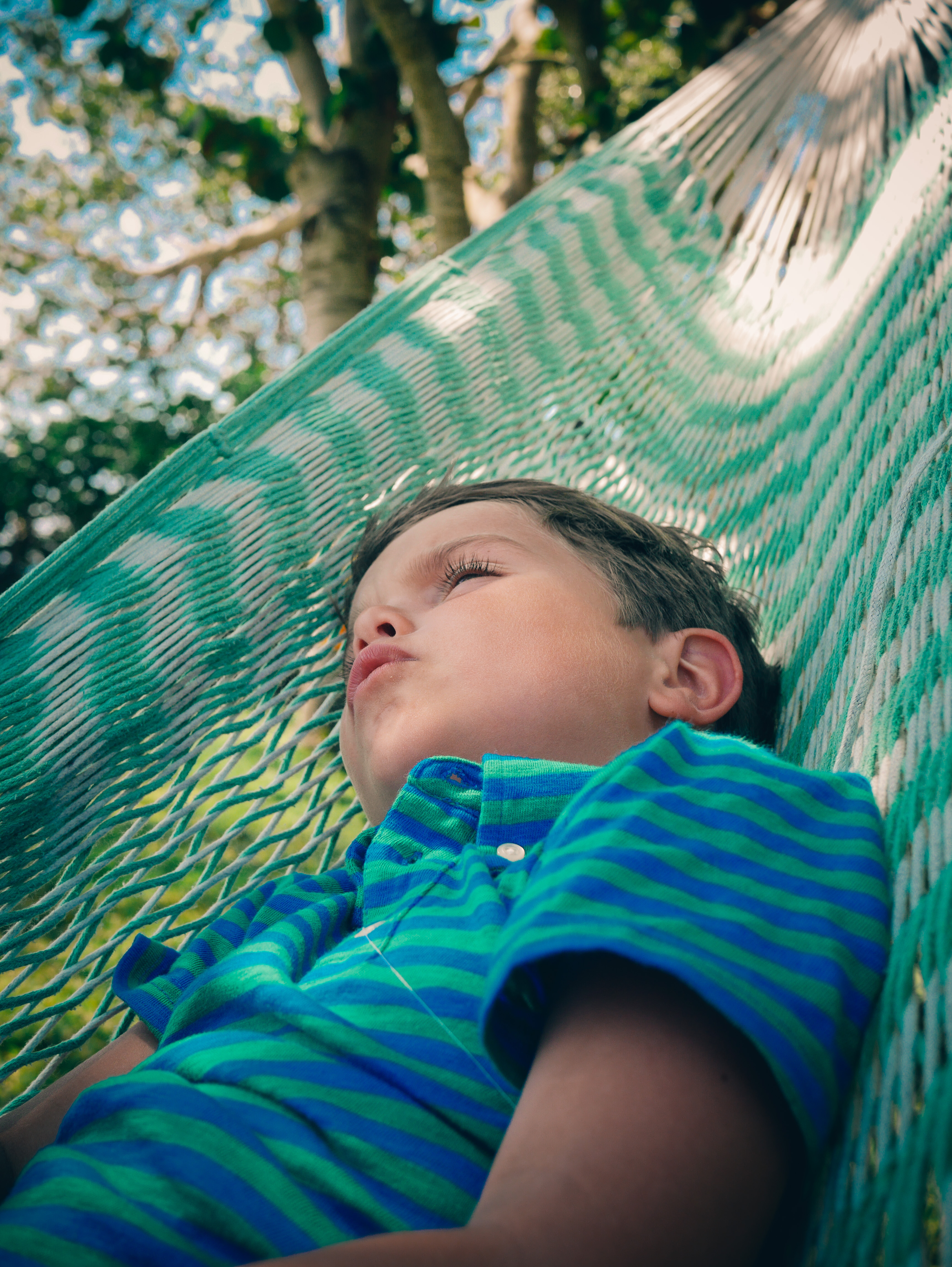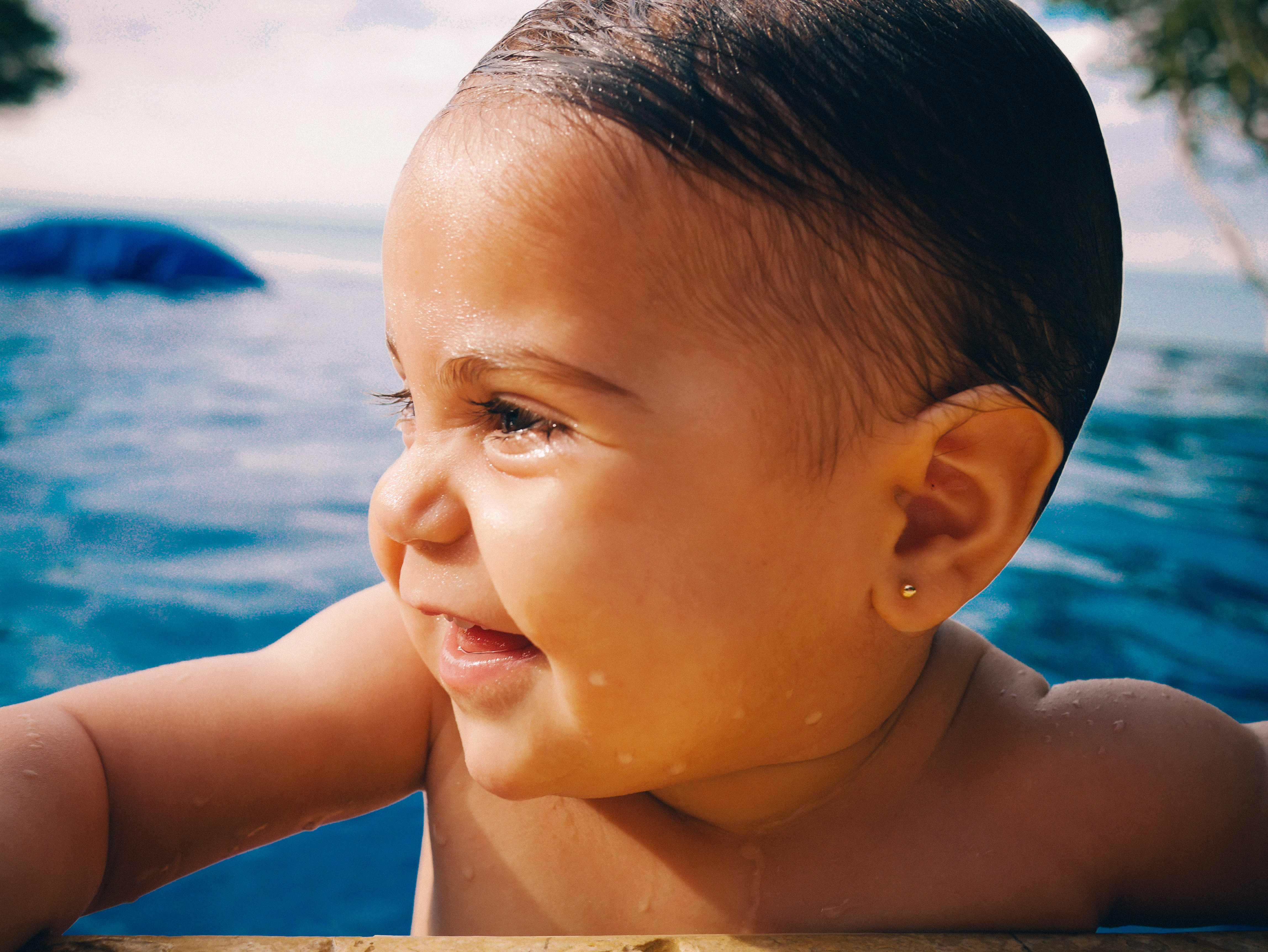 Olly: I’m floating on a giant pillow in the pool with Tita and Henry.