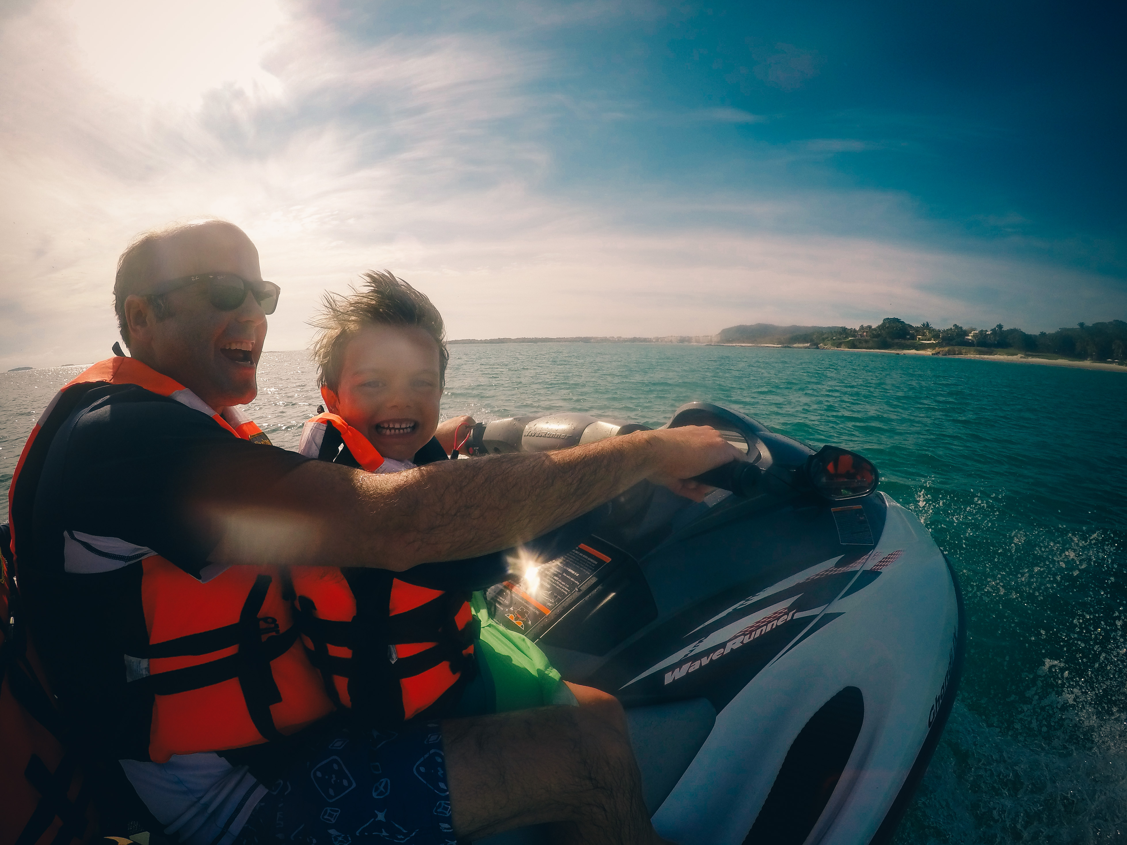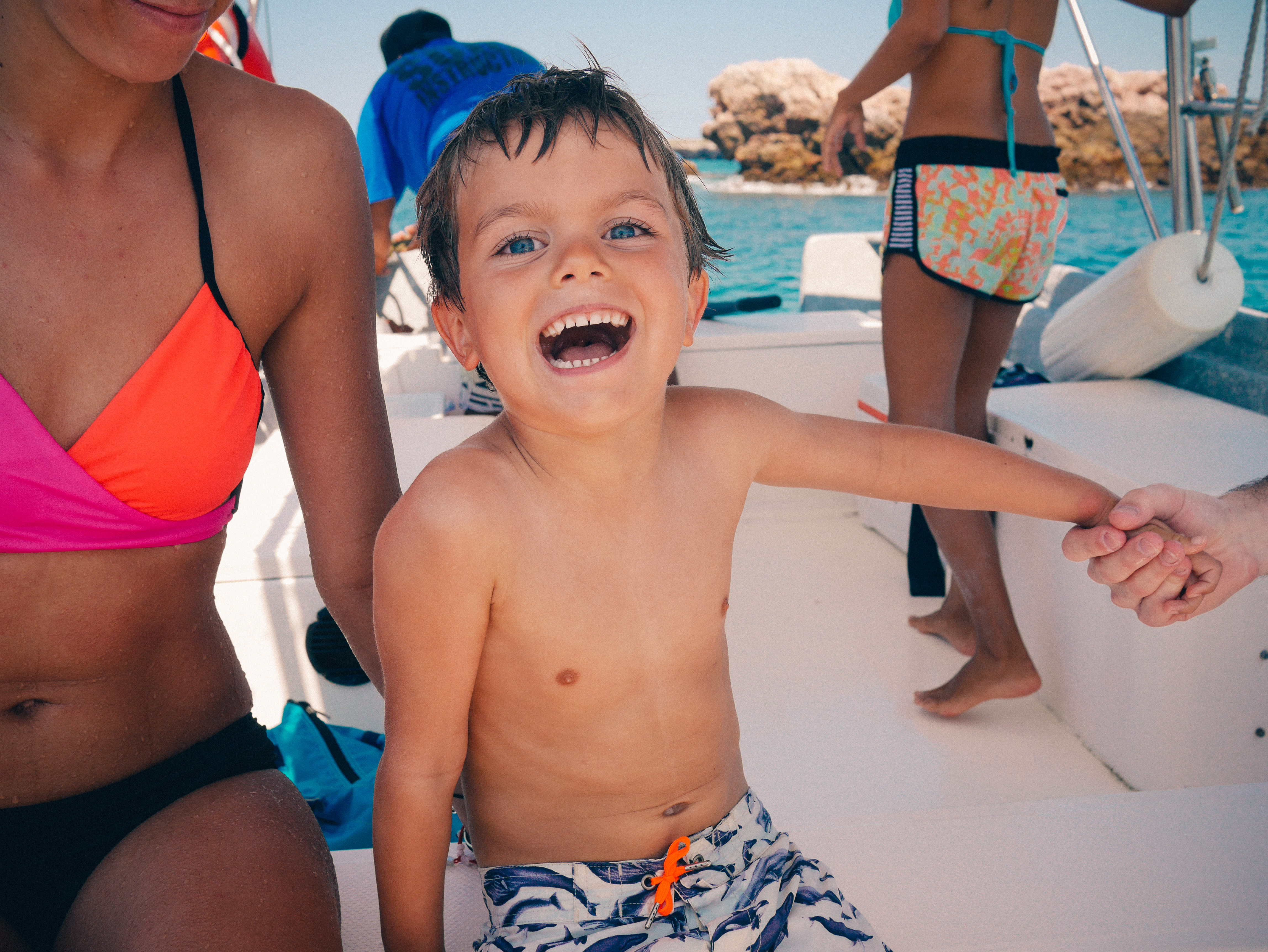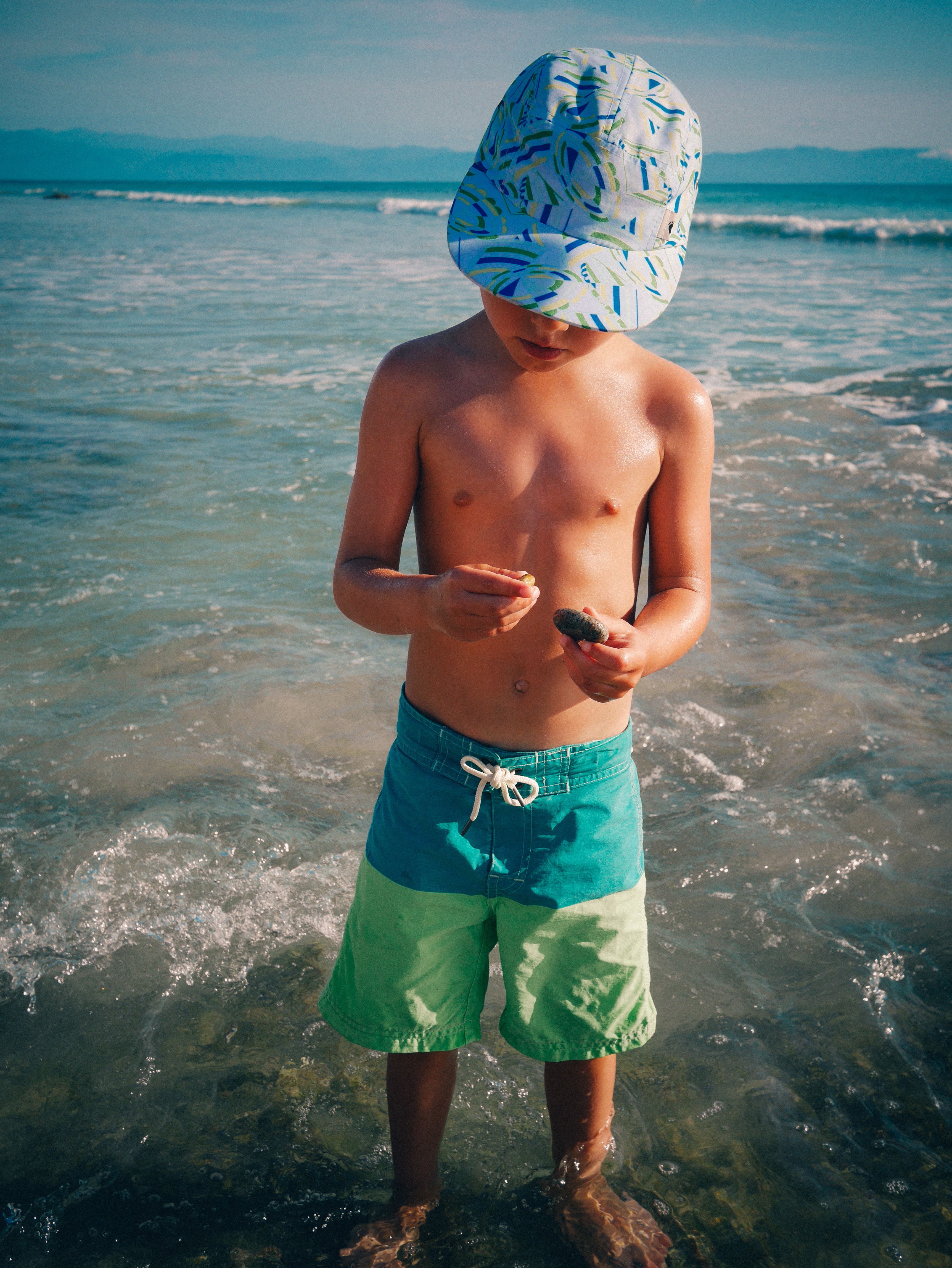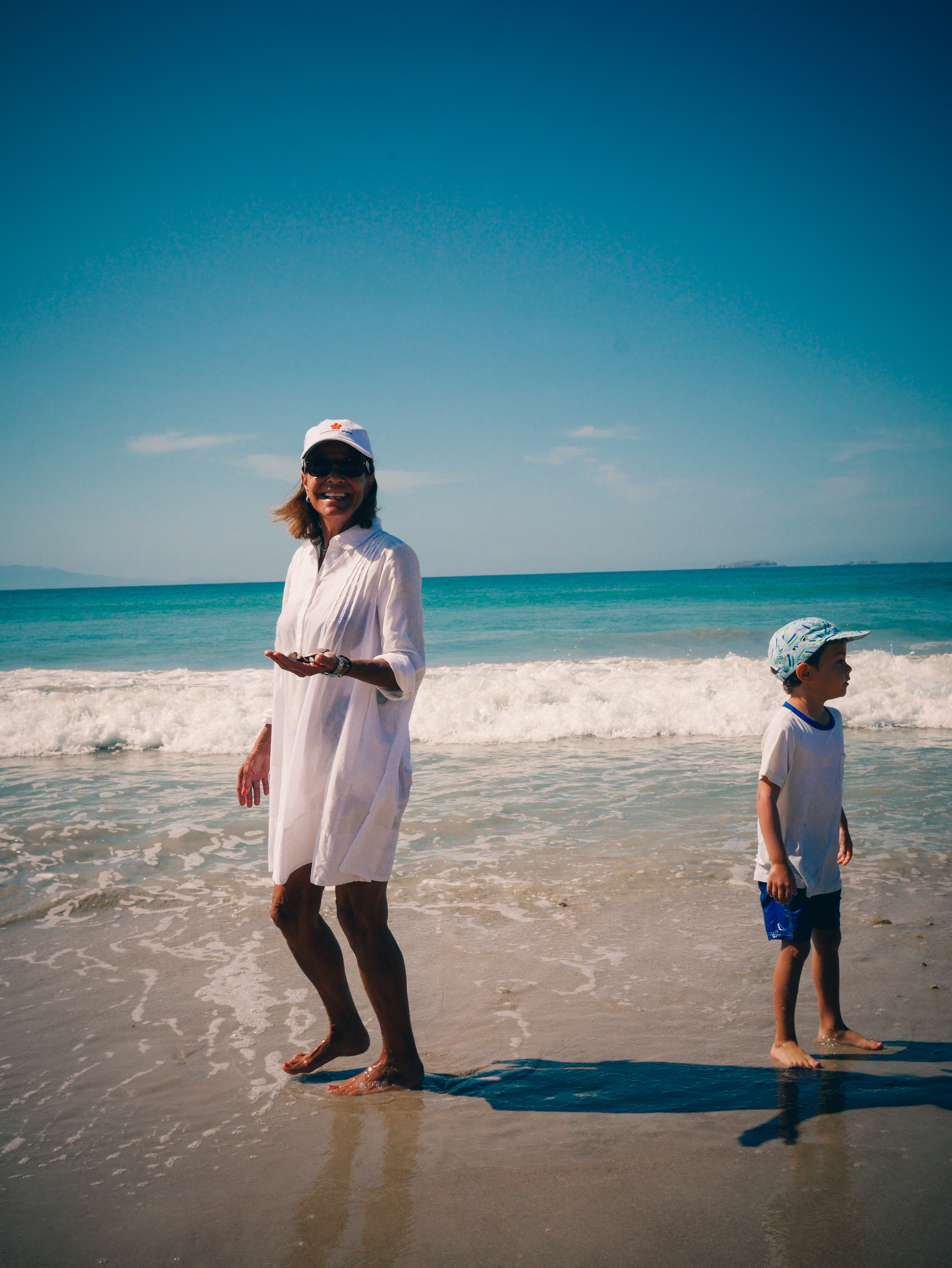Swimming, backflips, going on the jetski, eating red snapper, collecting rocks and shells, the boat ride to the island, seeing whales, smores, the pinata!, eating candy, playing in the waves, fish tacos, and… oh yeah, hermit crabs.