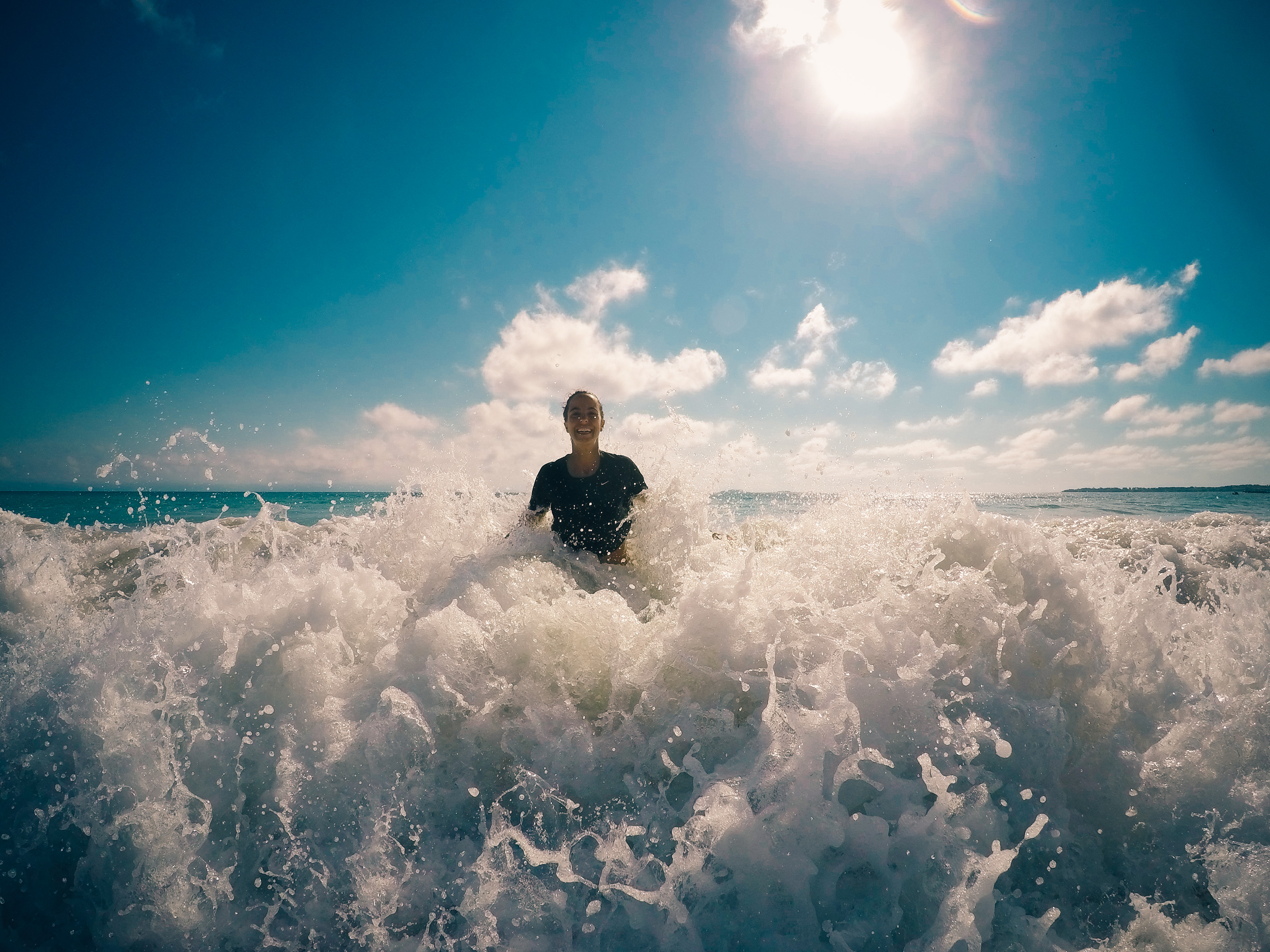 Becca: The first thing we did when we arrived was to put on our swimming suits and run into the sand.