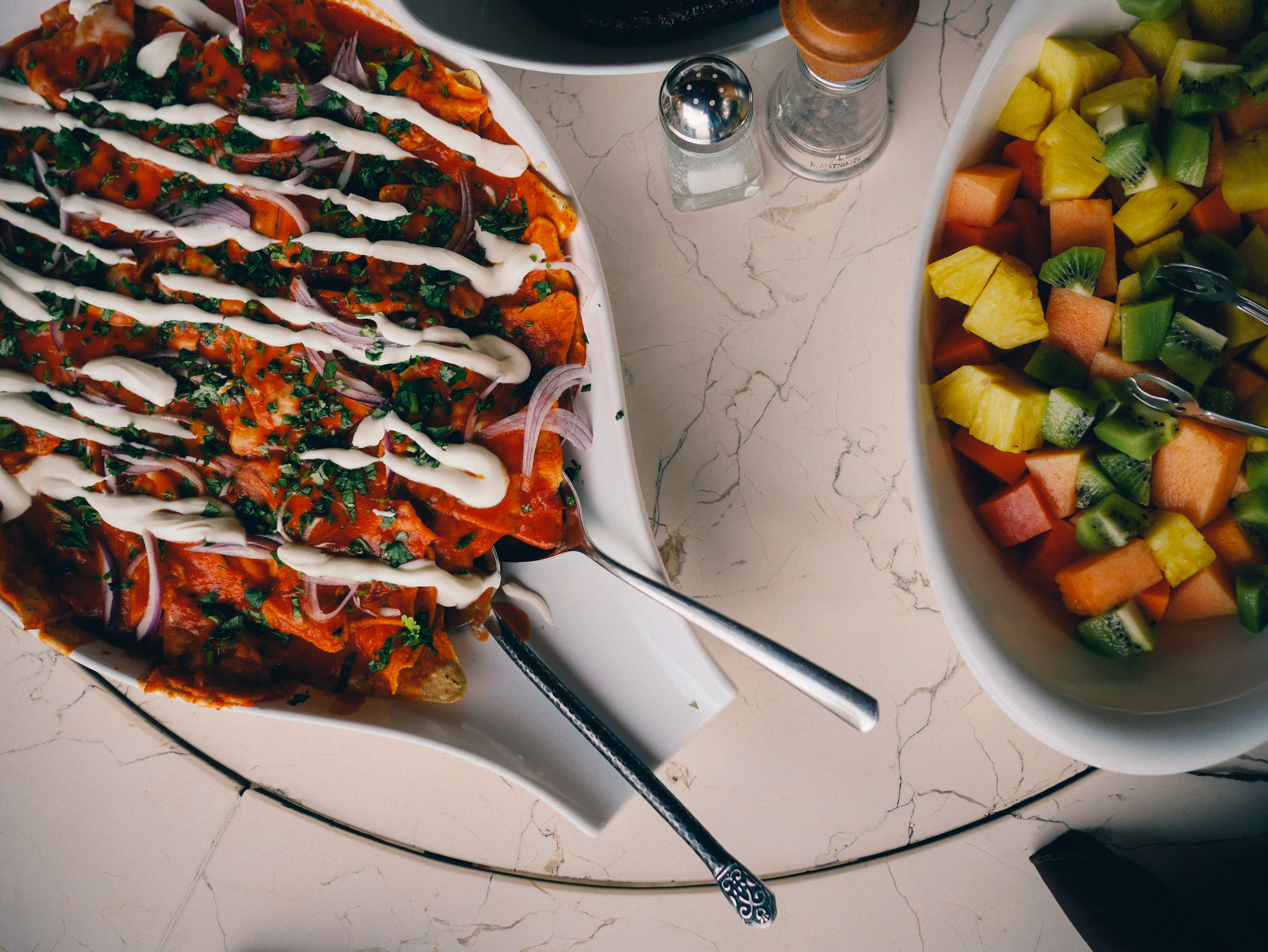 Olly: Oooooooh. Spicy eggs with tortilla chips.