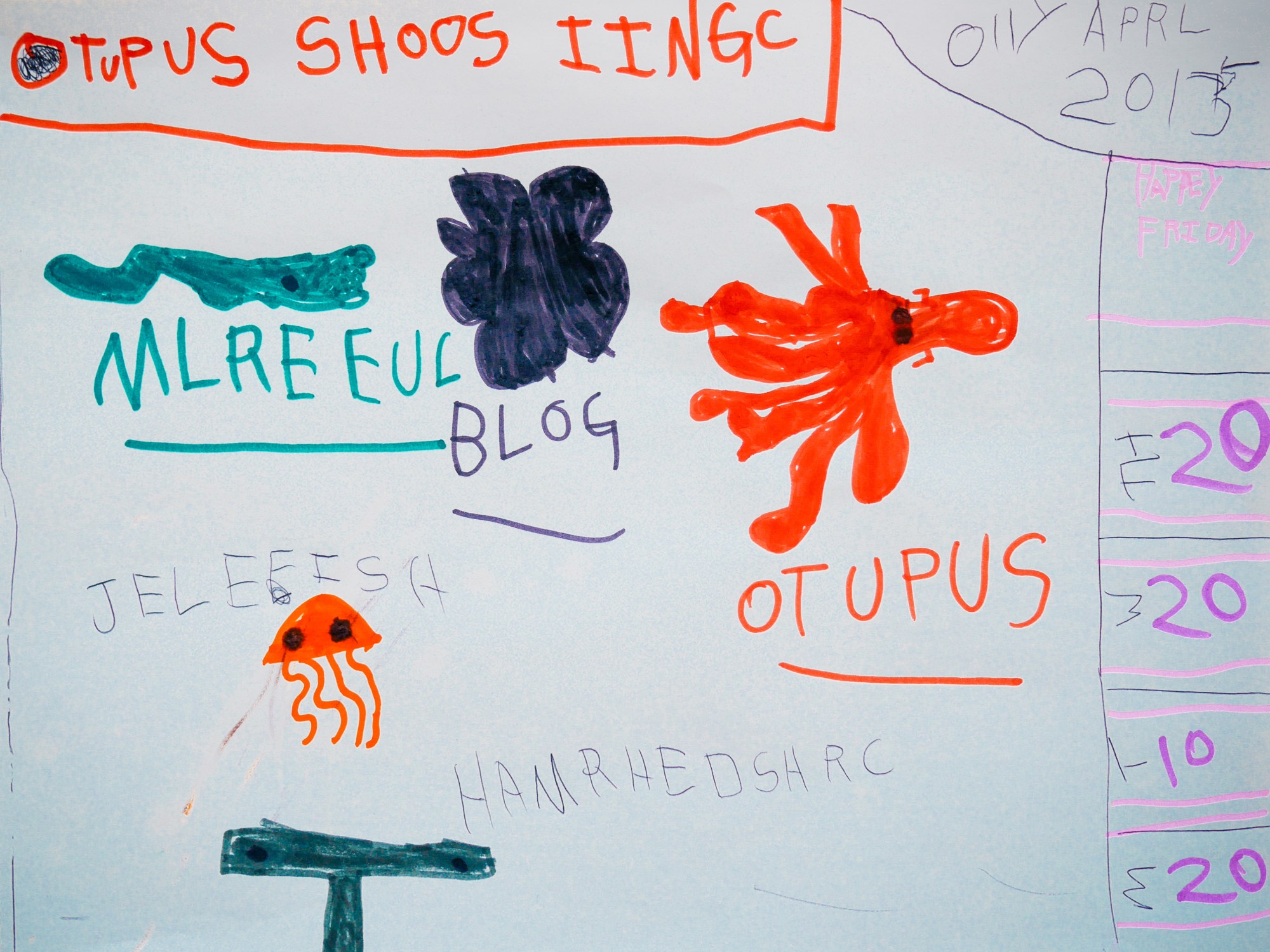 In the past two blog posts, we start by asking Oliver, “What is a blog?” His answers (here & here) are so funny—including the one he spontaneously gave us this morning (complete with diagram).