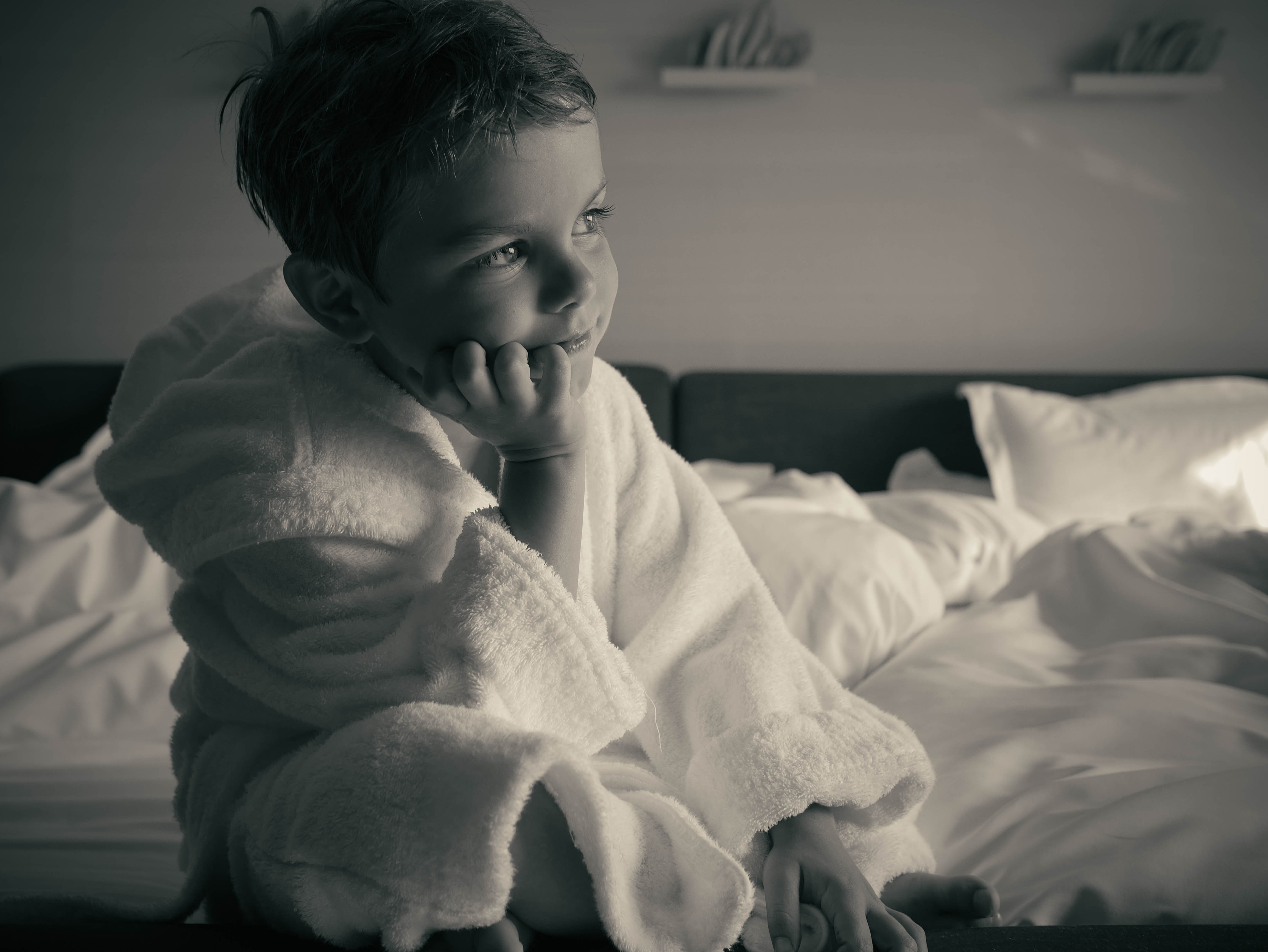 Our hotel had thoughtfully filled our room with kid-sized items—bathrobes, pajamas, and toiletries (quite possibly the smallest tube of toothpaste we’ve every seen). First thing in the morning, Oliver immediately donned the robe.
