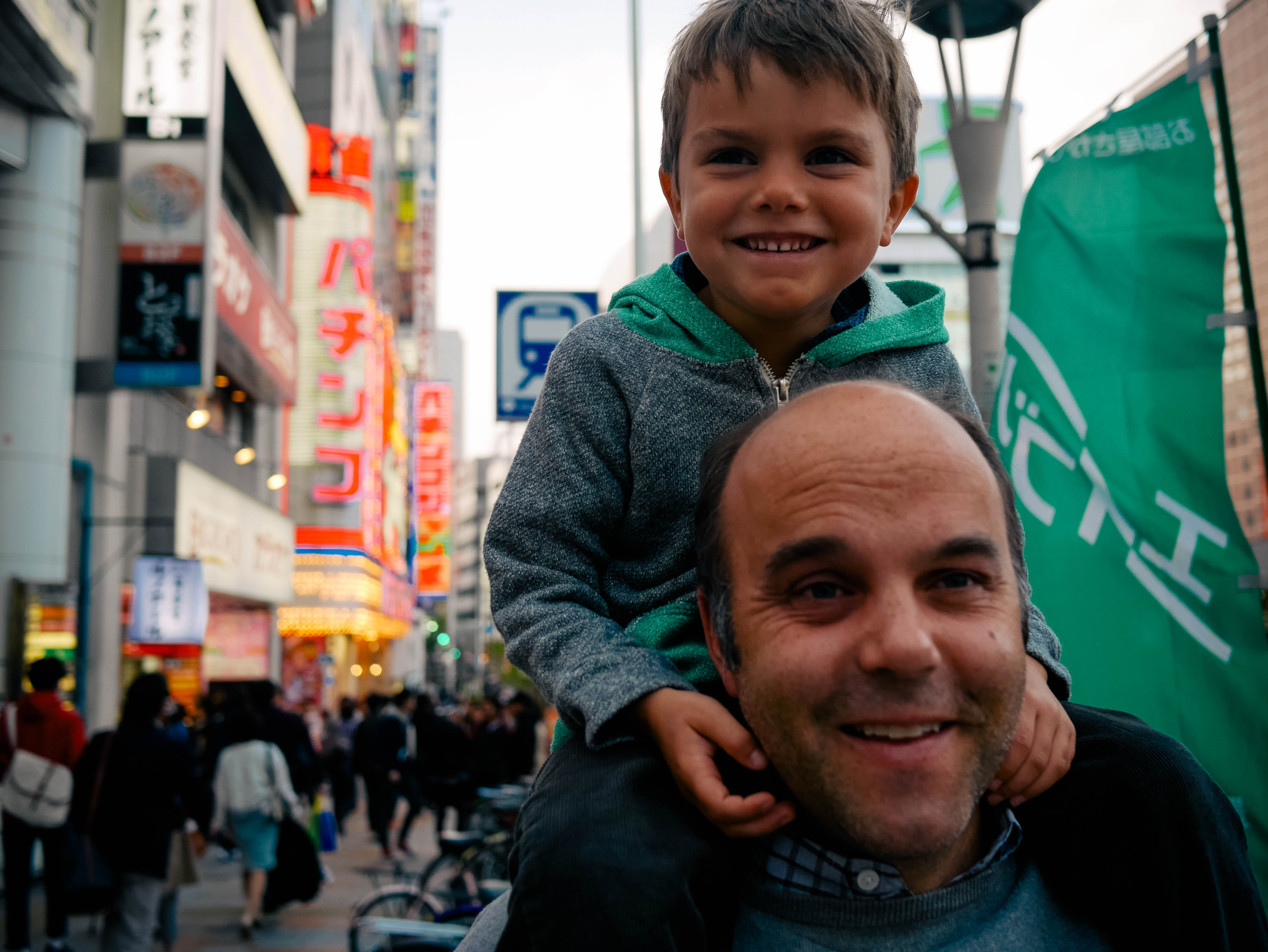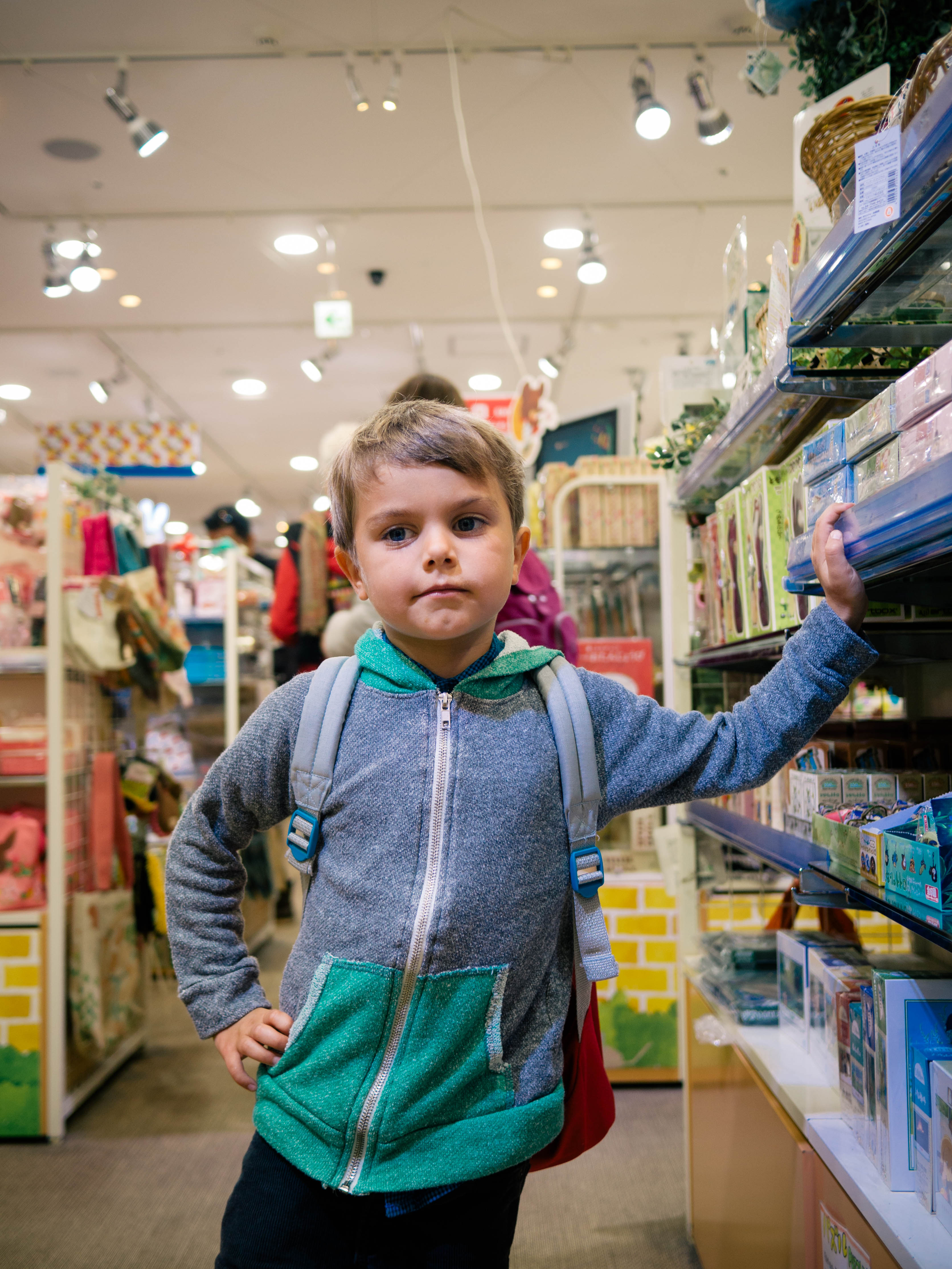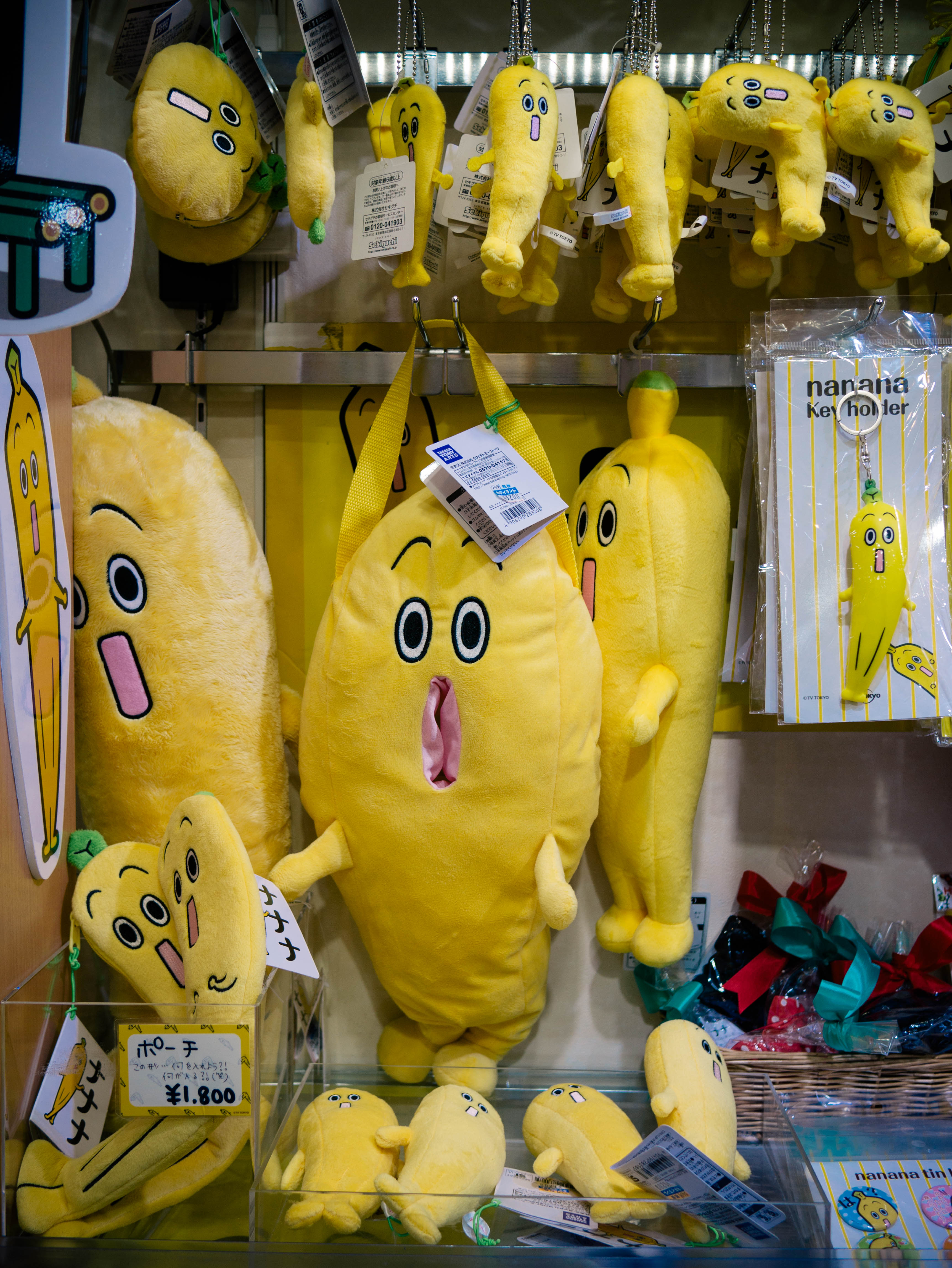We got to Kiddyland as it was opening. The line of people waiting to get in—ironically adults—poured in as they opened the doors. We made it up to the second floor where there was a lot of Finn Family Moomintroll, Miffy, and Totoro. Bought some great gifts. Olly used some of his own yen to buy a toy Shinkansen (bullet train) and a kendama. Lots of fun Japanese characters. A favorite: a banana named “Elite Banana” who wears a tie and glasses and has his own TV show. Intrigued…