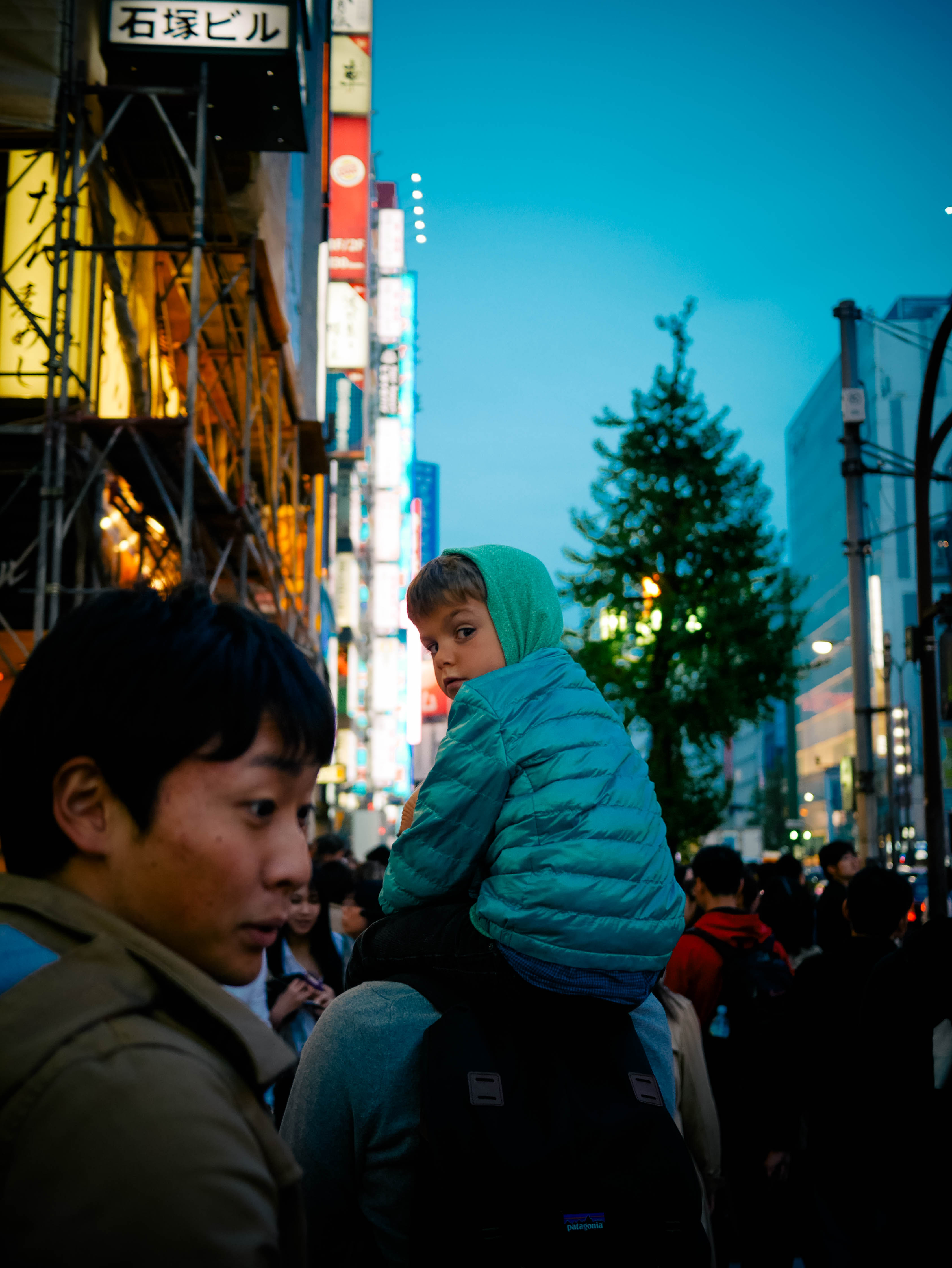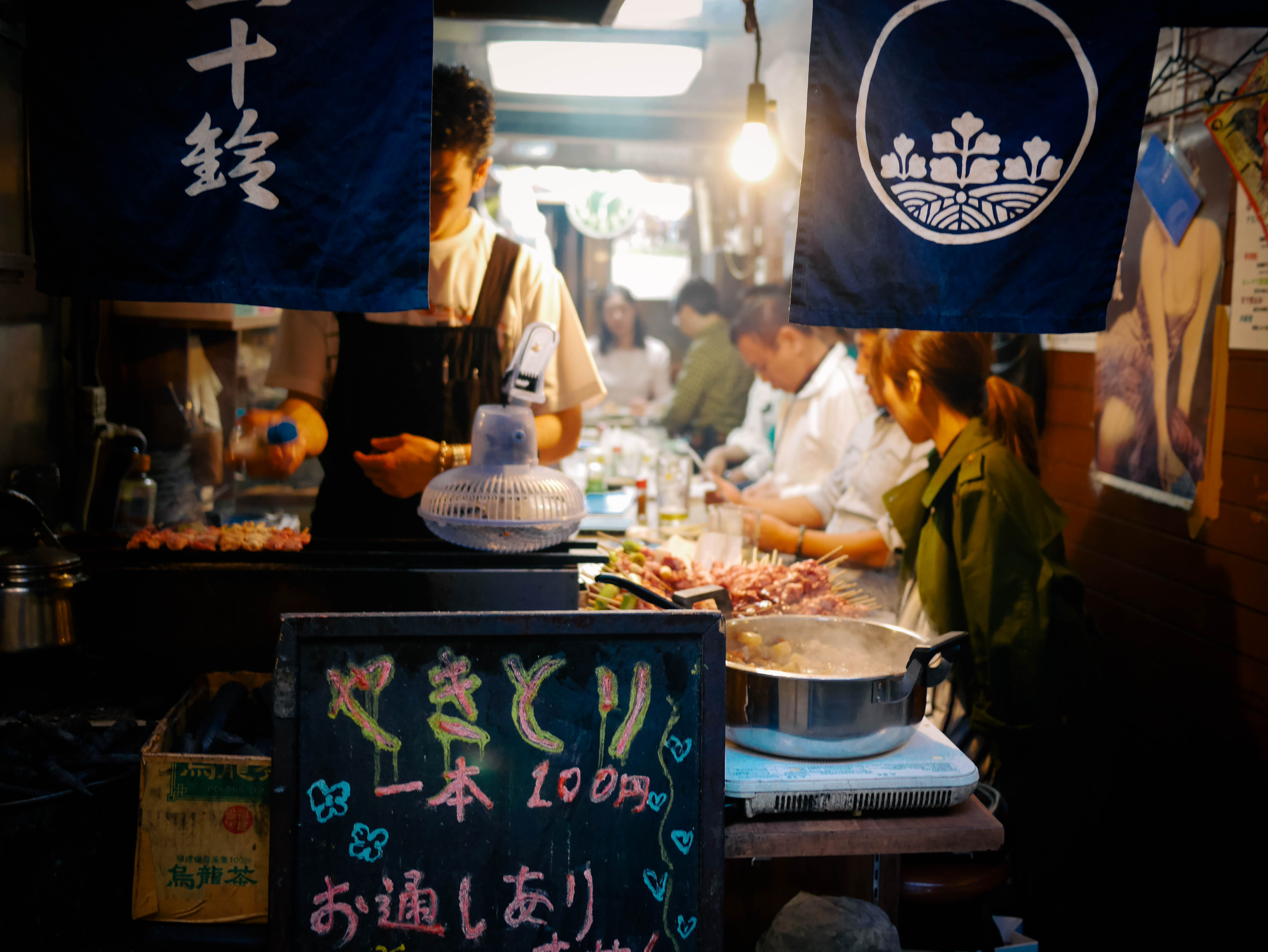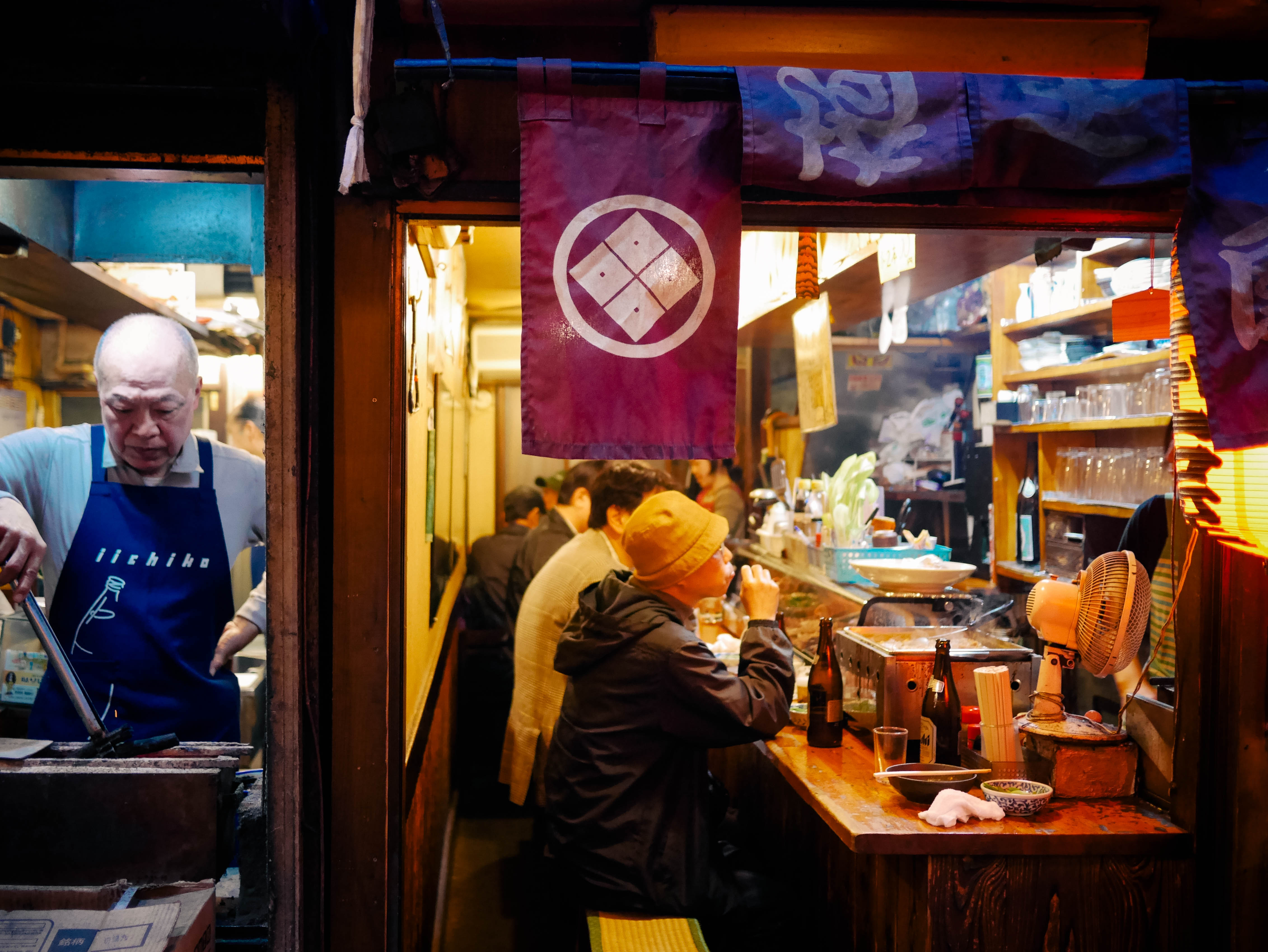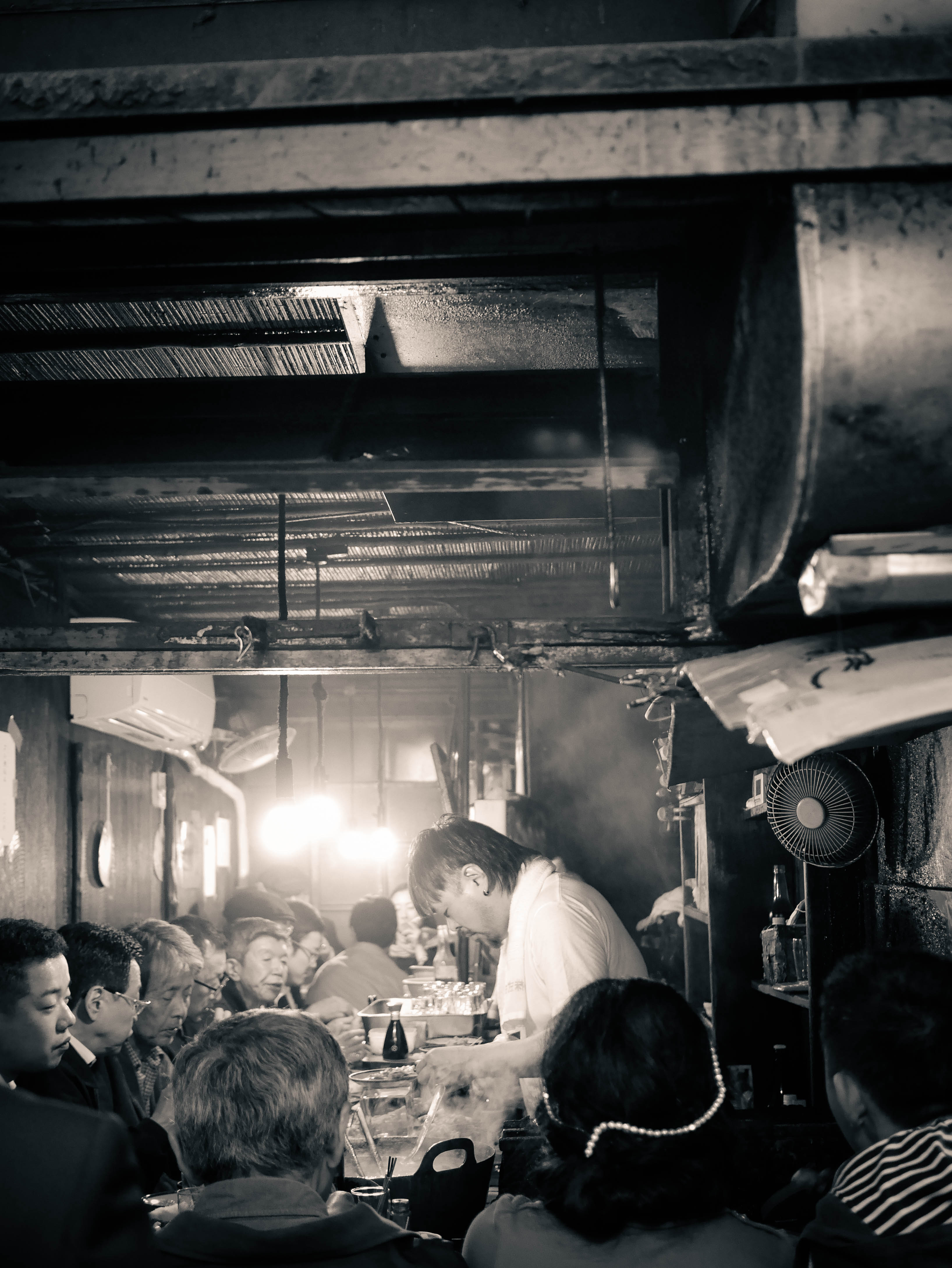 Back out on the street. Exploring the bustling neon of Shinjuku. We ducked off the main road to a small dark alleyway—Omoide Yochiko (below)—where locals dined on yakitori in small stalls that sat 3 or 4 people. Smoke wafted from the small grills—it smelled incredible. We walked up and down the alleyway twice just taking it all in.