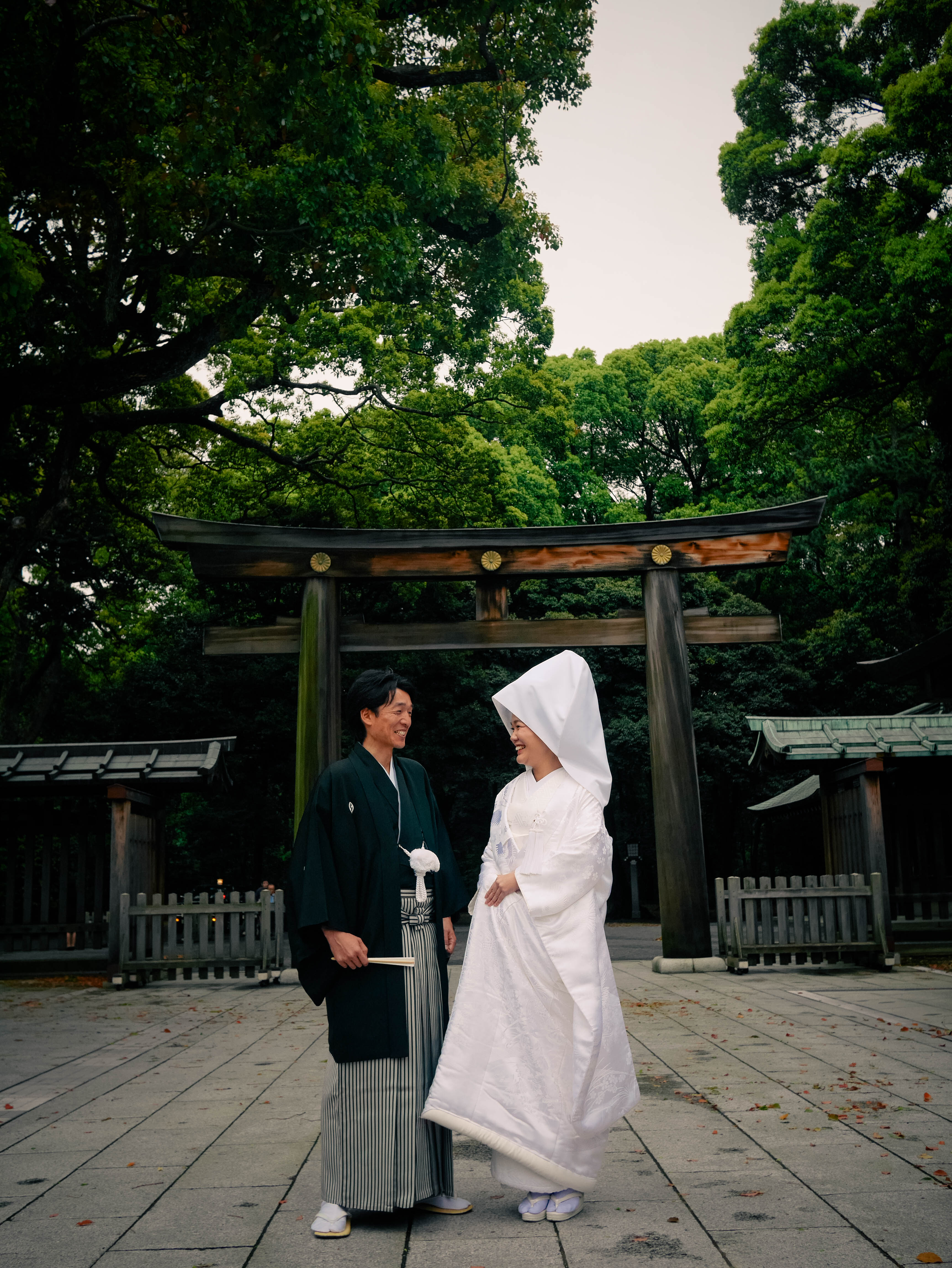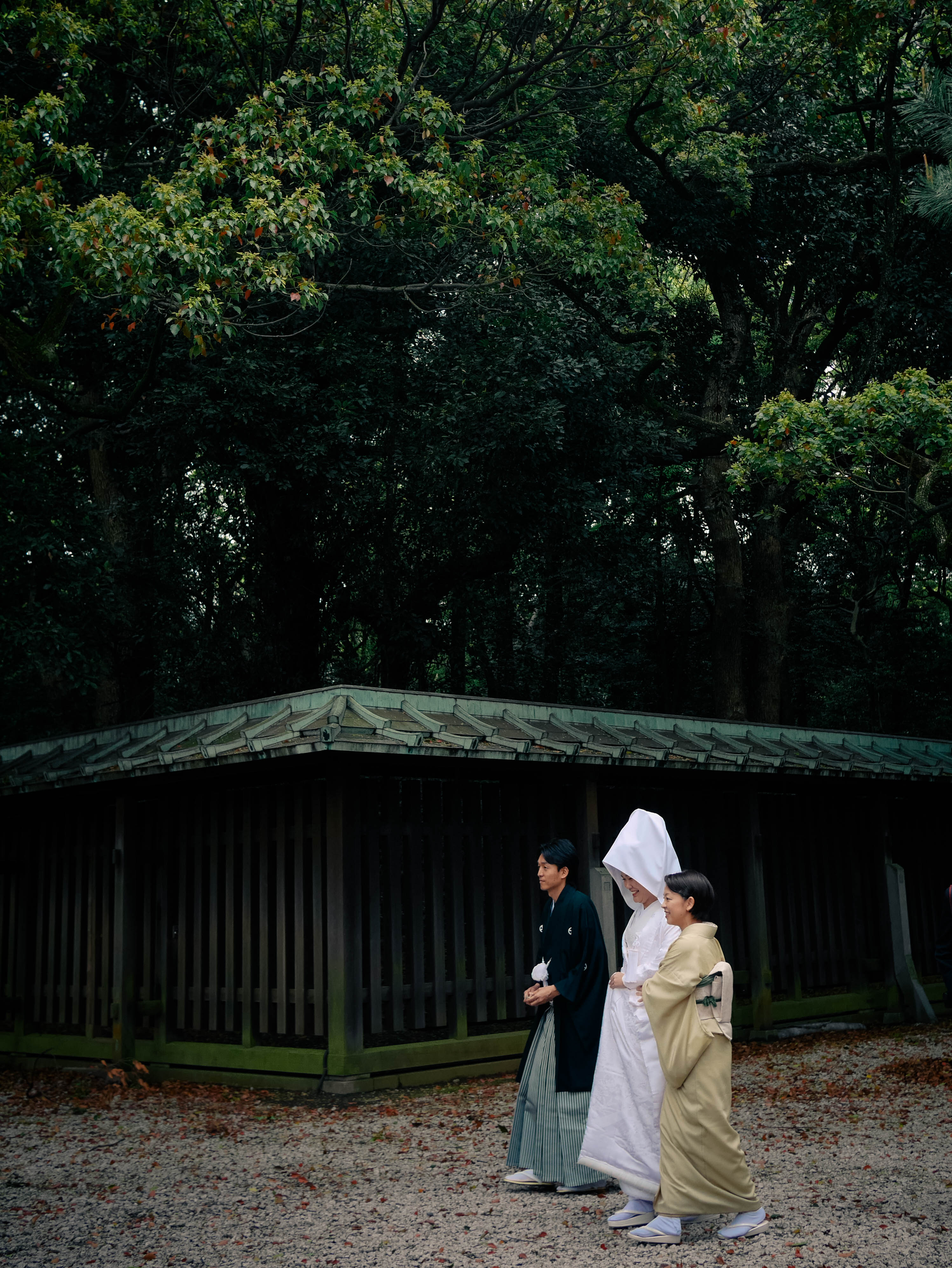 It was a traditional Japanese wedding ceremony. We saw women in kimonos getting the bride ready to see the groom. How were the bride and groom dressed?
