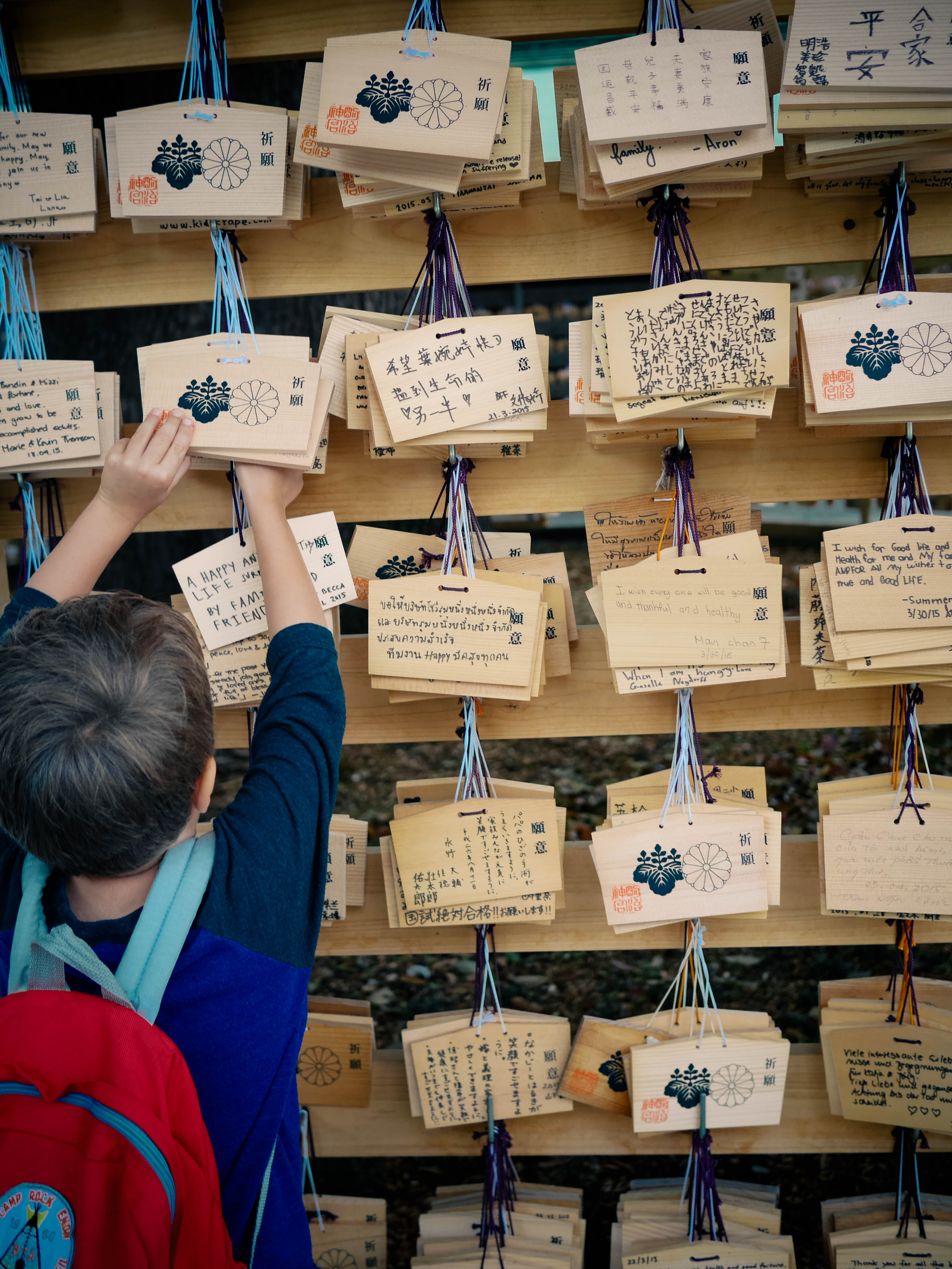But, I absolutely loved our morning at the Meiji Jingu Shrine. It was so peaceful. My favorite part was writing on the prayer votive tablets (“ema”) and adding it to the divine tree. Remember we talked about how you can plan so much of your trip, but sometimes unexpected things happen that can make a moment feel special. What was that moment this morning at the shrine—do you remember?