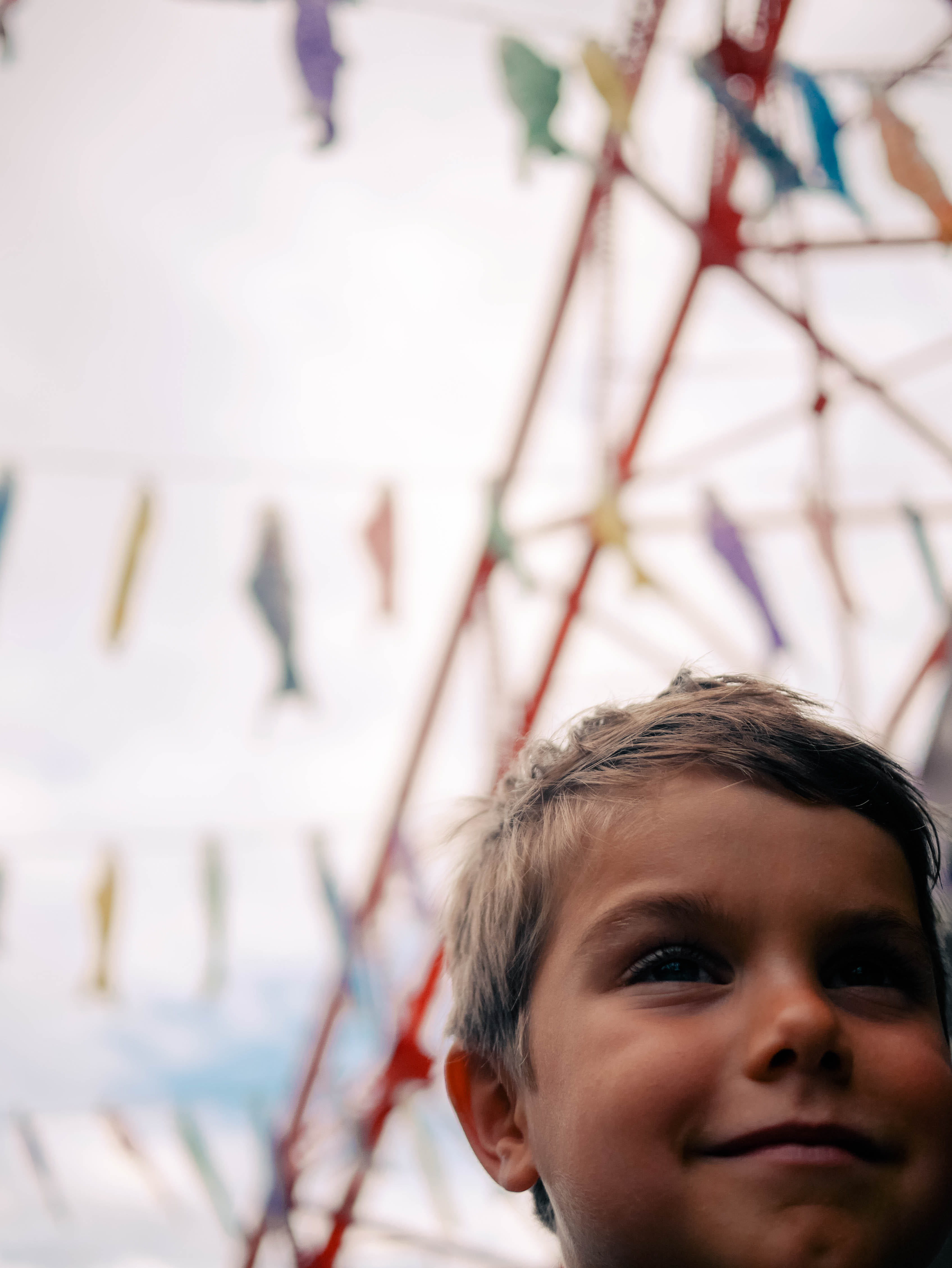 Praying by clapping twice and bowing. Hanging our prayer on the tree with writing in lots of languages. Seeing the gardener rake the leaves.