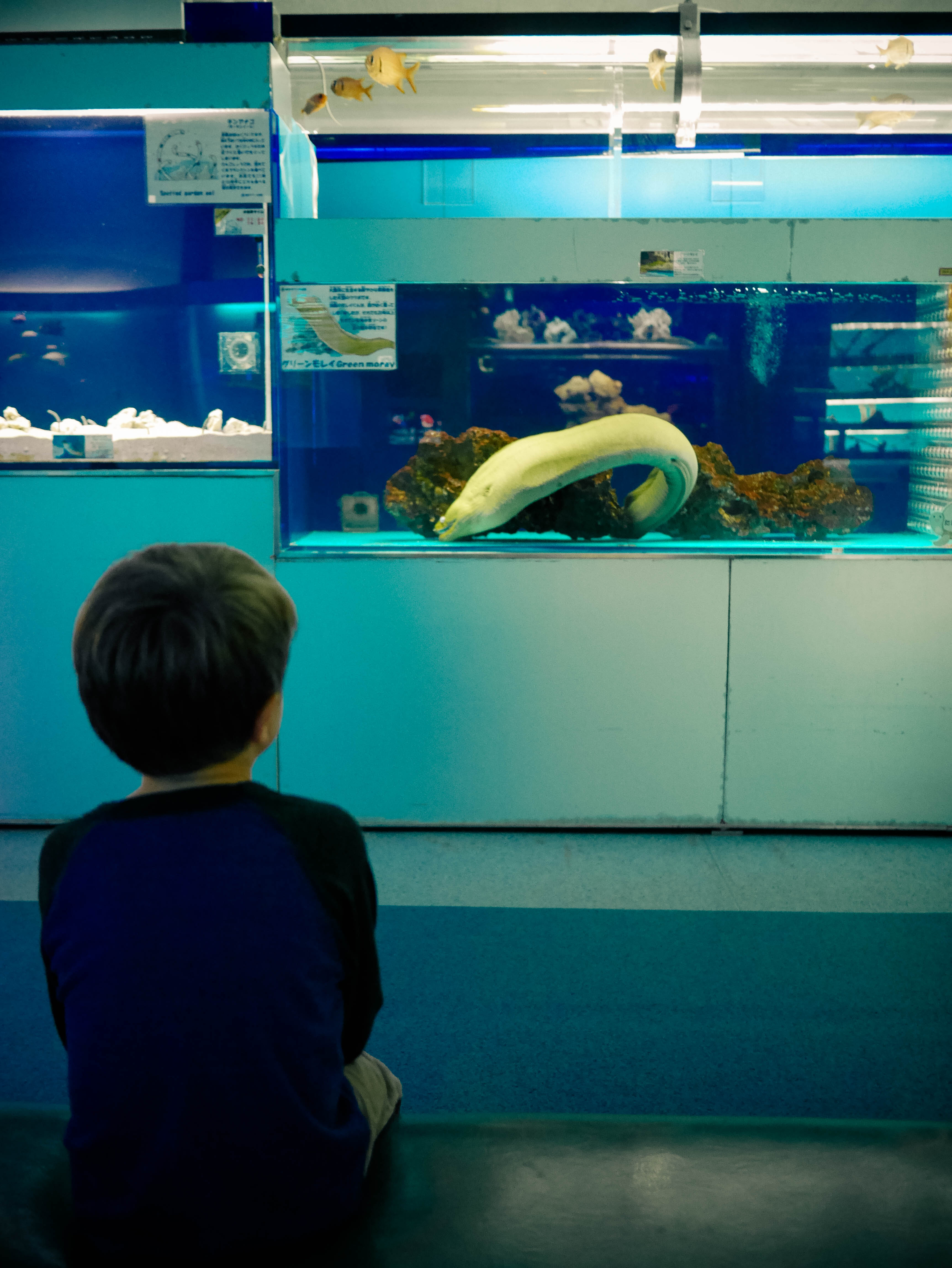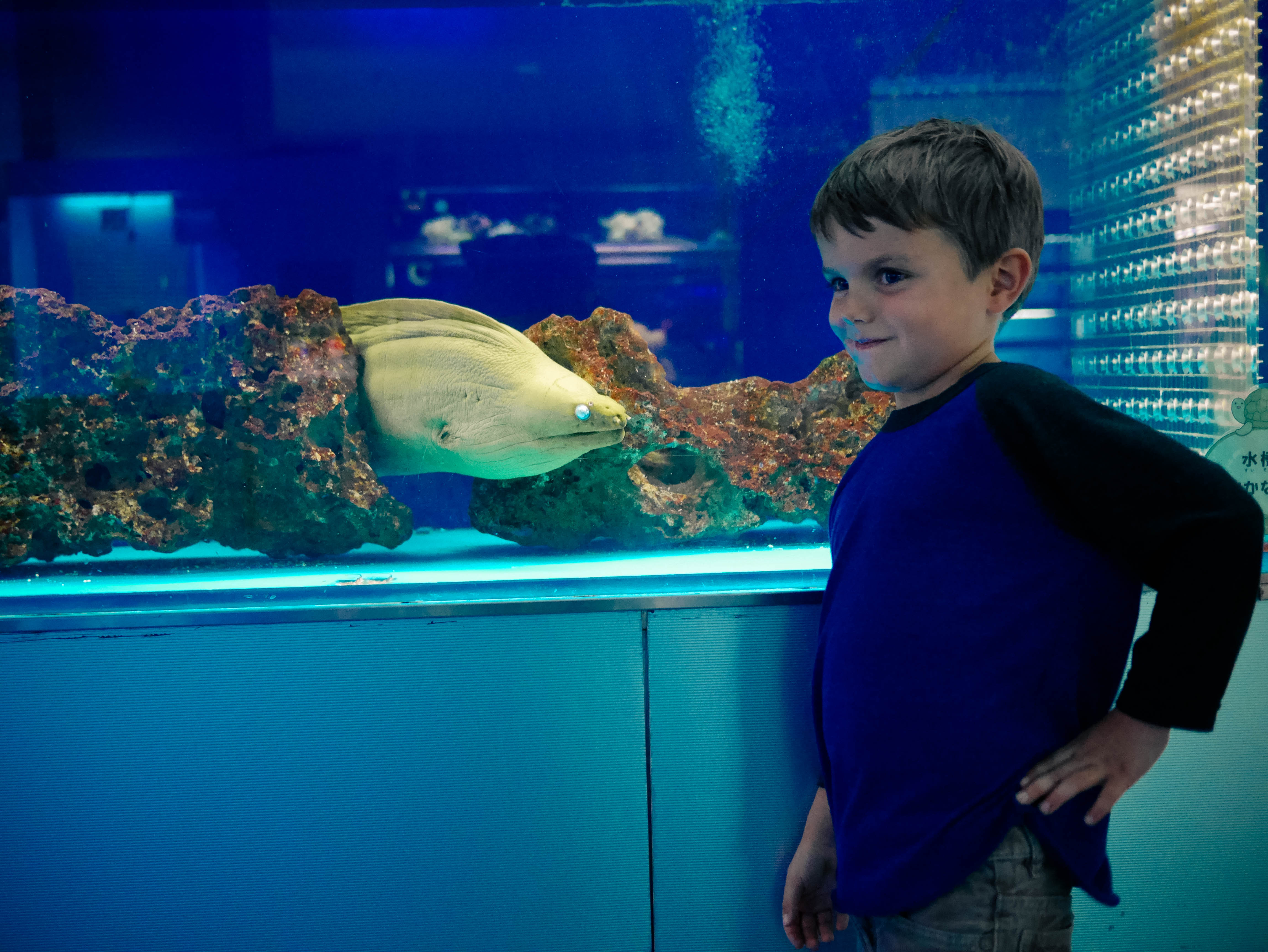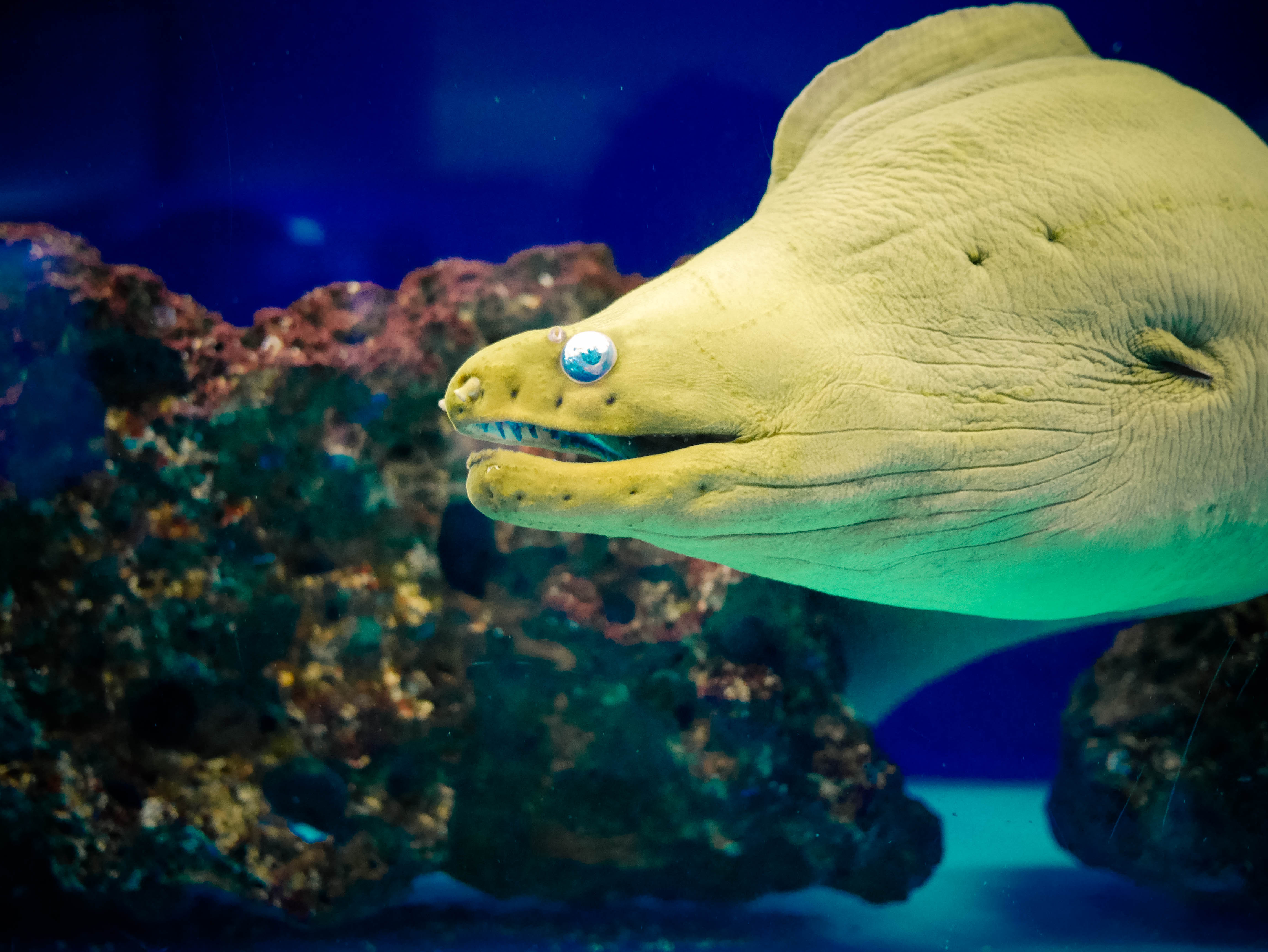 We were greeted at the Tokyo Tower Aquarium by an enormous green Moray Eel with huge white eyes.