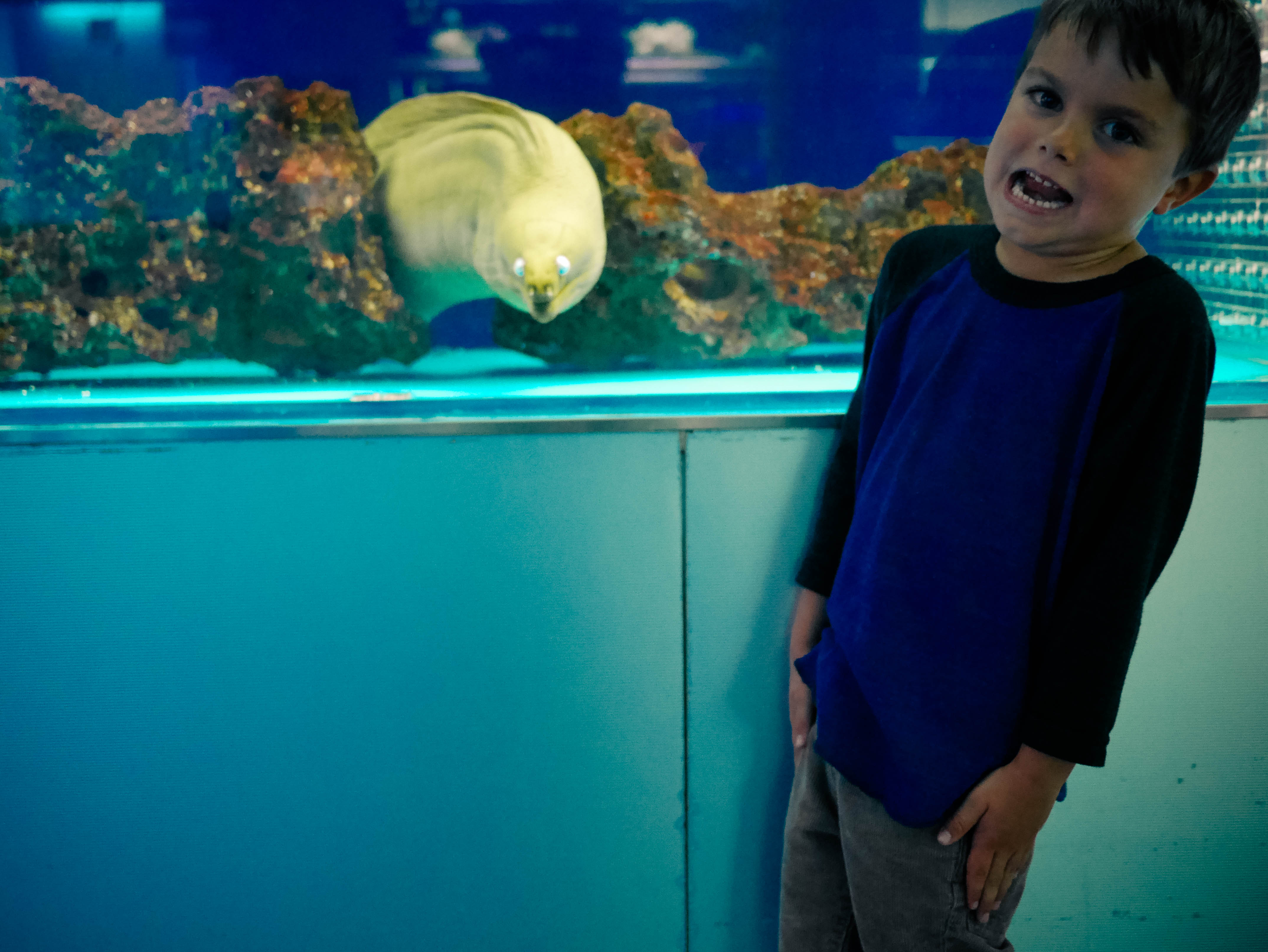 Olly doing his best eel impersonation. We love that the eel is impersonating Olly as well.