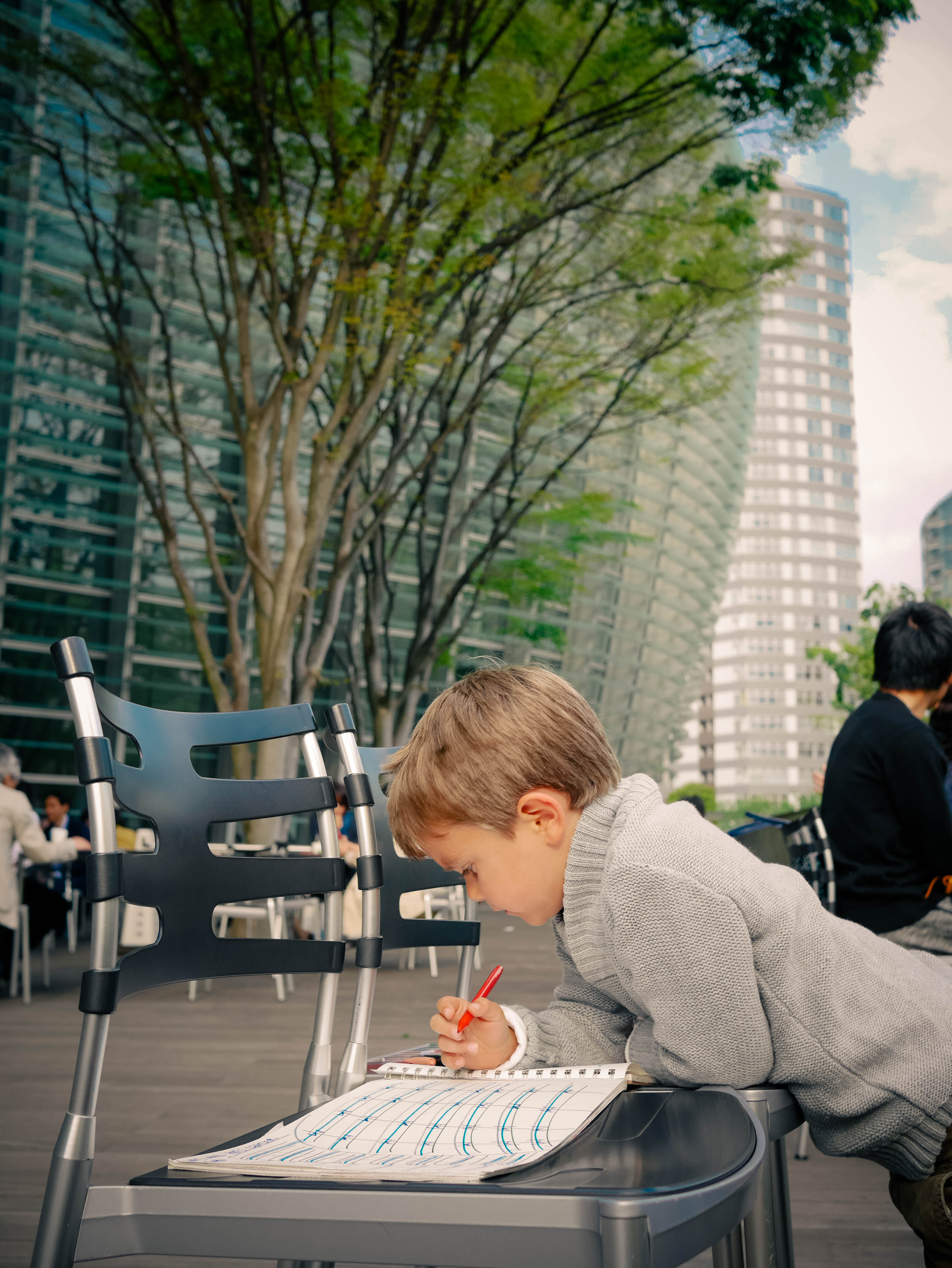 After securing some Ninjago Legos at Kiddyland, we went to the National Art Center in Roppongi. We sat outside and sketched—the building itself is beautiful. Oliver loved the curved architecture.