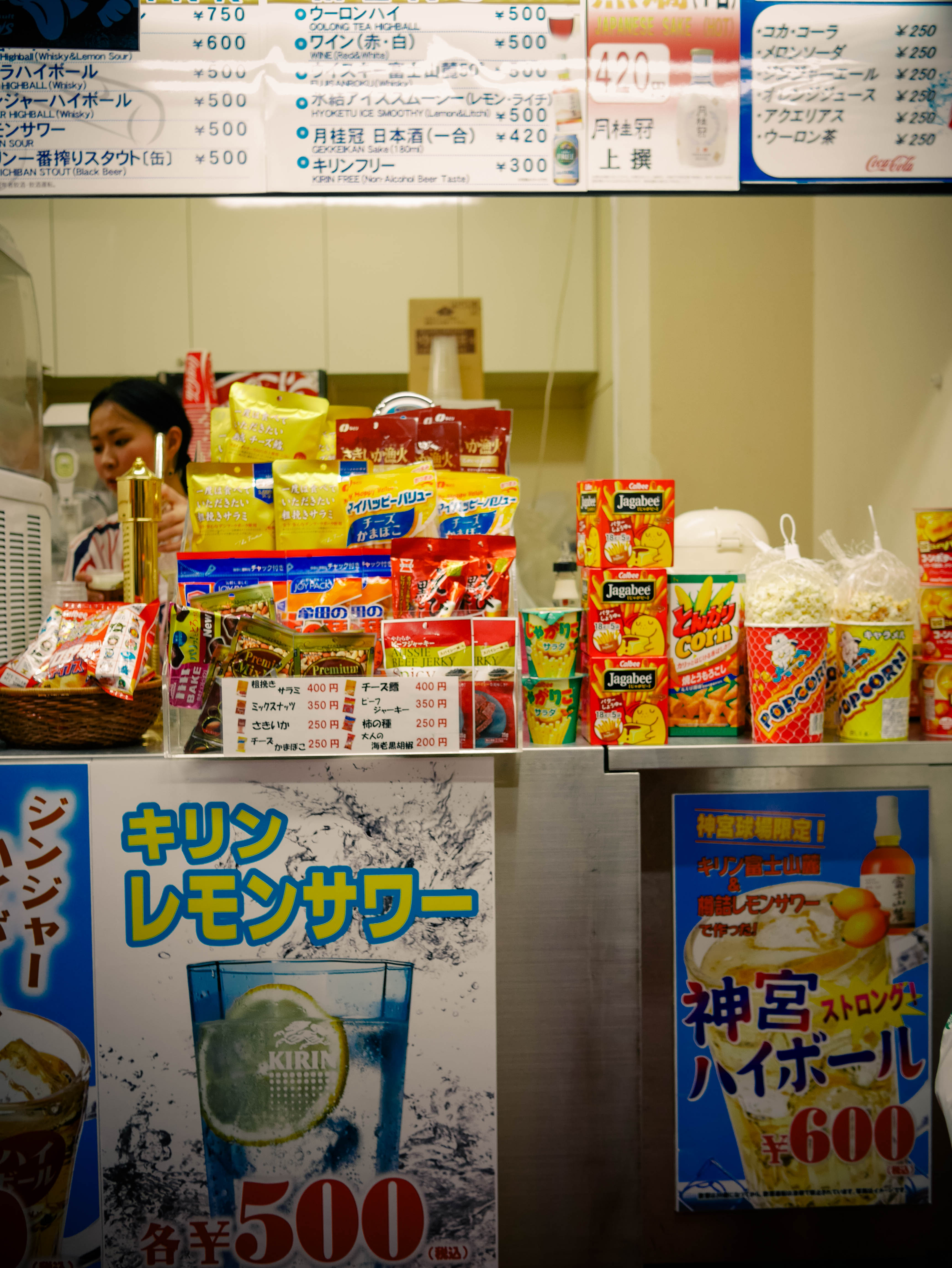 The snack bar. Sure, they had some of our favorites—popcorn and ice cream—but they also had ramen, yakitori, and bento boxes.